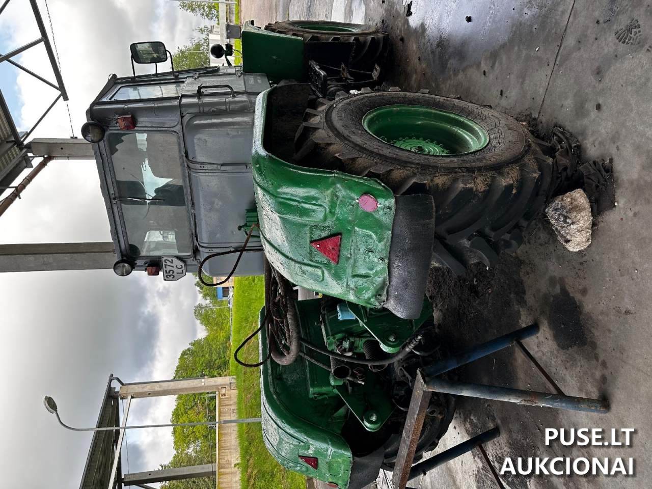 Parduodamas traktorius T-150 K, turintis 3572 LC registracijos numerį, variklis su šešiais mažais cilindrais, kuriam atliktas kapitalinis remontas. Šis žemės ūkio technikos vienetas pagamintas 1989 metais. Nors traktorius buvo nenaudojamas apie du metus dėl esamo pavarų dėžės gedimo, jo padangos įvertintos kaip geros būklės, su maža pravažiuota rida.