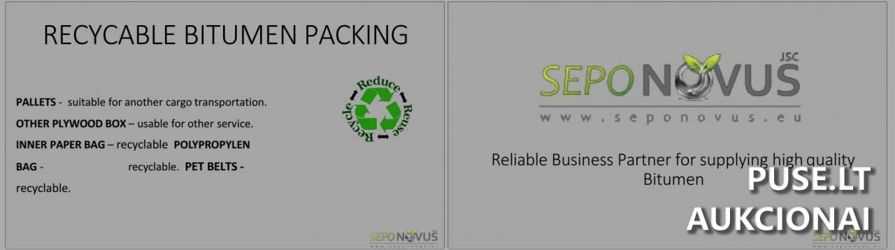 Parduodami specializuoti 1000 litrų talpos konteineriai, skirti bitumo transportavimui ir sandėliavimui, parduodami Antstolių varžytynių būdu. Tai yra Antrosios kategorijos turtas, kurio pradinė aukciono kaina siekia 7200 EUR.