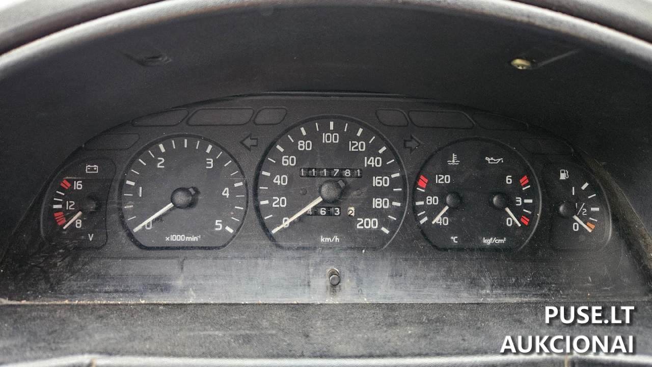 Transporto priemonės rida yra 111781 km. Automobilis neturi oro kondicionieriaus. Yra pastebėti techniniai defektai, įskaitant nesandarią variklio tarpinę su tepalo pratekėjimu, nesandarų aušinimo sistemos radiatorių, kėbulo parūdijimus ir prastos būklės akumuliatorių. Techninės apžiūros (TA) ir civilinės atsakomybės (CA) draudimas negalioja.