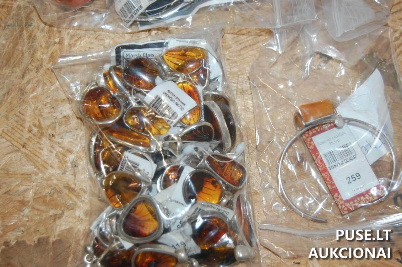 Parduodami papuošalai (žiedai, apyrankės, pakabukai, segės, auskarai ir pan.), dekoratyviniai dirbiniai ir poliruoti bei dekoruoti gintaro gabalai.