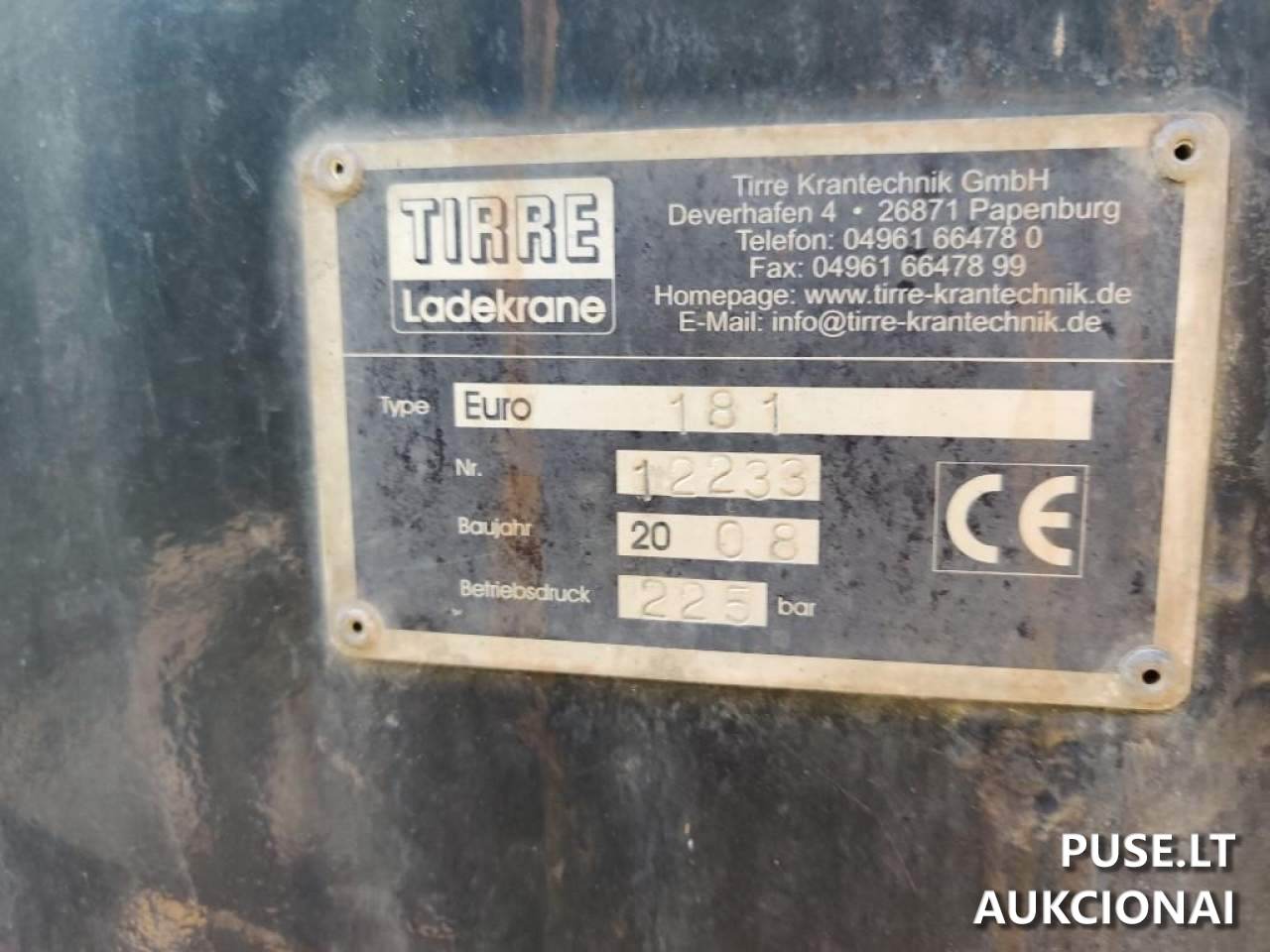 Ant savivarčio sumontuotas hidraulinis teleskopinis kranas Tirre Euro 181, serijos Nr. 12233, pagamintas apytiksliai 2008 metais.
