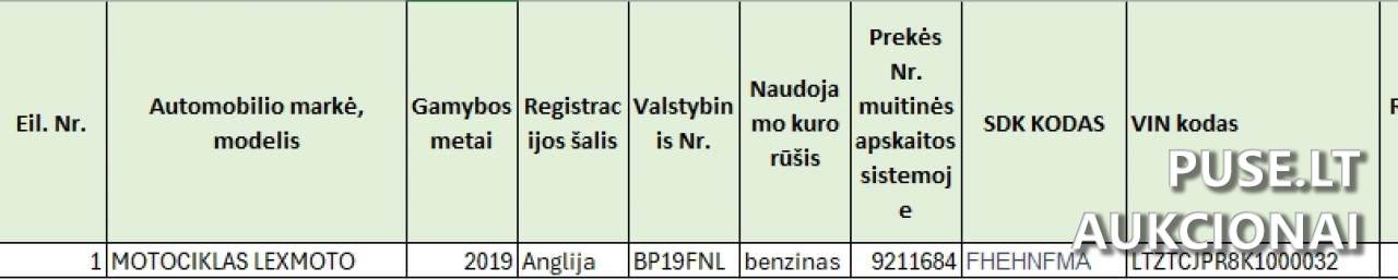 Kada baigiasi motociklo Lexmoto aukcionas?