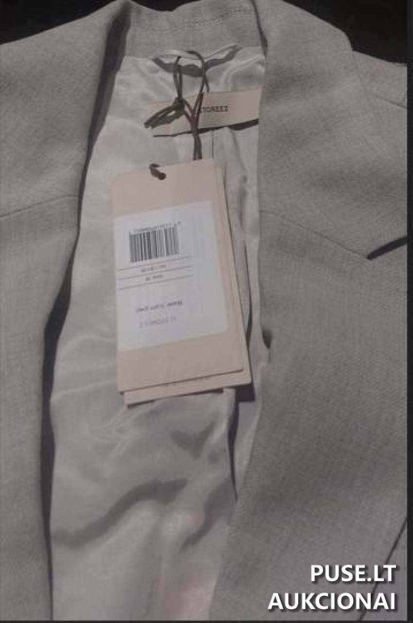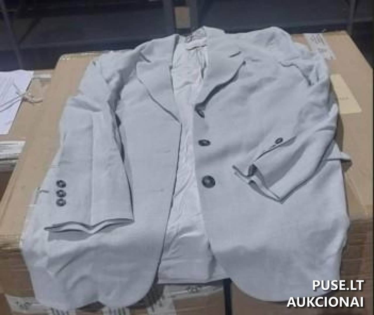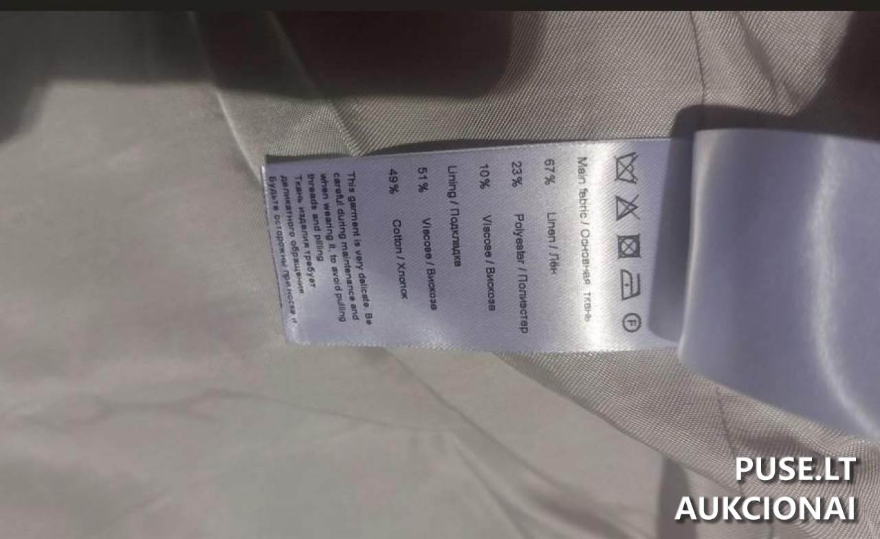 Parduodamas moteriškas švarkas iš lino, paskelbtas pakartotiniame aukcione. Švarkas yra nedidelės kainos objektas, kurio pradinė kaina sudaro 52 EUR. Prekės dydis yra M, spalva – šviesiai pilka. Būklė turi būti nustatoma dalyviui apžiūrint prekę vietoje, kadangi pardavėjas, parduodantis prekes teismo sprendimams vykdyti tvarka, neprivalo garantuoti parduoto daikto kokybės, išskyrus atvejus, kai apie trūkumus buvo žinoma. Įsigytos prekės atgal nepriimamos ir nekeičiamos, joms nesuteikiama jokia garantija. Tai svarbi sąlyga, įvertinant prekės įsigijimo riziką.