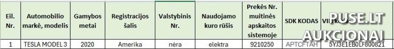 Eksploatuoti netinkama Tesla Model 3 aukcione Vilniuje nuo 1208 EUR - Gamybinė atlieka