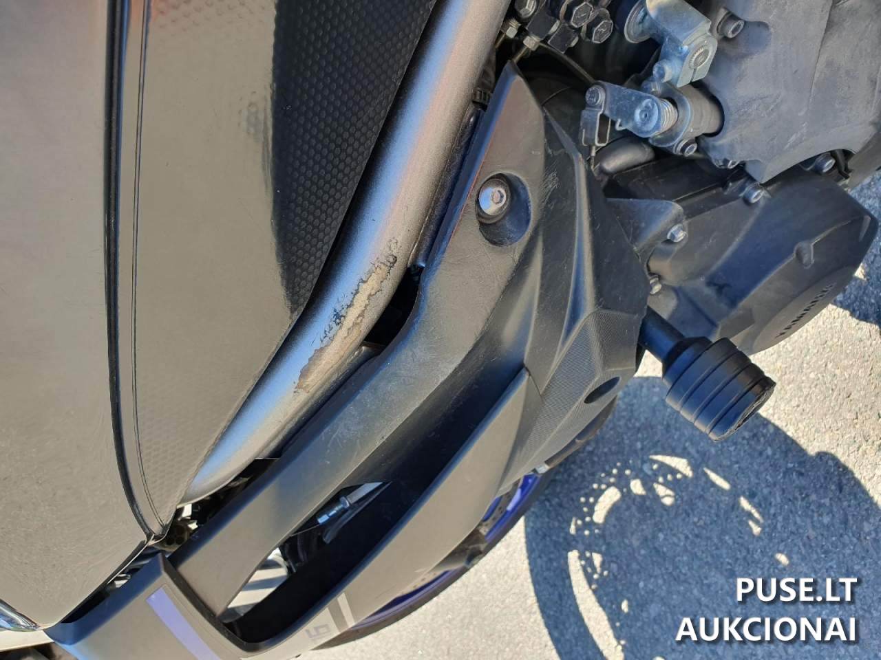 Nurodyti defektai: apsaugų įbrėžimai ir skilinėjimai bei rėmo įbrėžimai. Motociklas parduodamas esamos būklės.