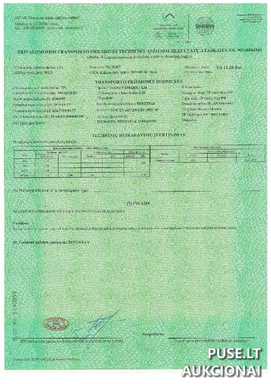 Parduodamas 2014 metų Yamaha XJ6 motociklas, siūlomas viešame aukcione. Pradinė motociklo kaina siekia 2205 EUR, o registracijos įmokos dydis yra 220 EUR. Šis pardavimas vykdomas Akcinės bendrovės "Regitra" organizuojamame pakartotiniame aukcione, kurio metu turtas parduodamas esamos būklės.