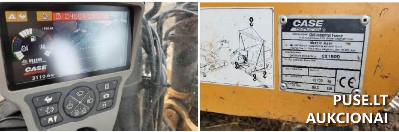 Vikšrinis ekskavatorius CASE CX 180D Klaipėdos rajone, pradinė kaina 48480 EUR