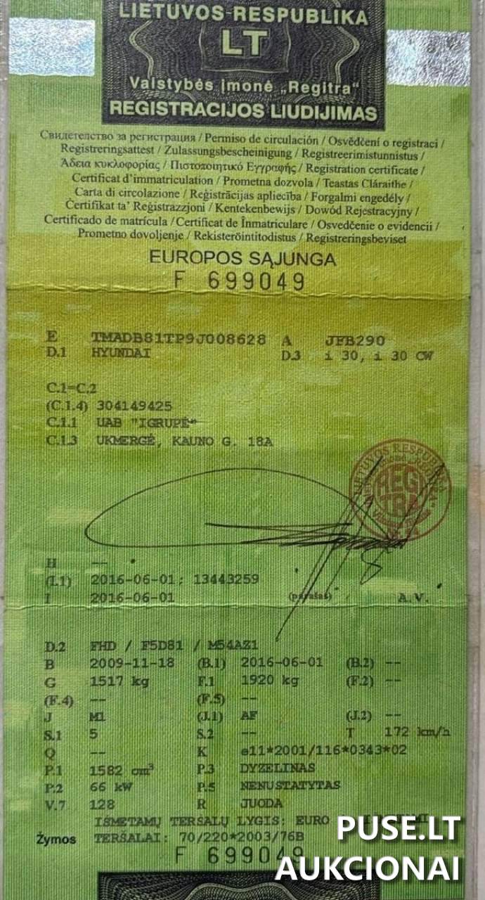 Parduodamas keleivinis automobilis HYUNDAI i30, modelis i30 CW, antstolių varžytynių būdu. Tai galimybė įsigyti automobilį su aiškia teisine procedūra. Turto areštas, kuris buvo įregistruotas disponavimo teisių apribojimas, yra taikomas šiam automobiliui. Aukcionas vyksta internetu ir yra nurodomas kaip "Vykstančios, Antstolių varžytynės".
