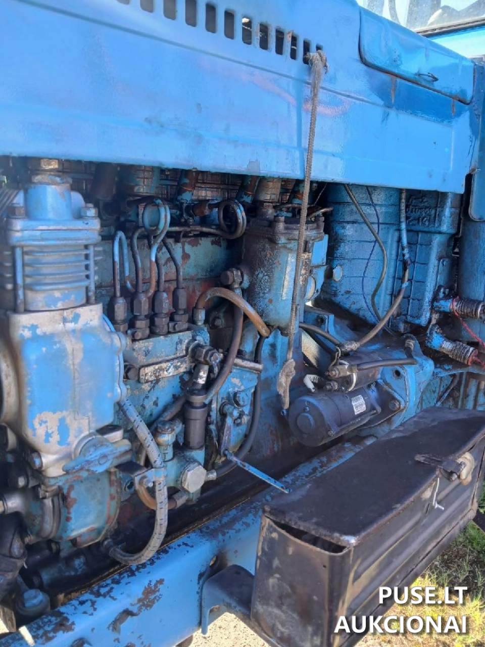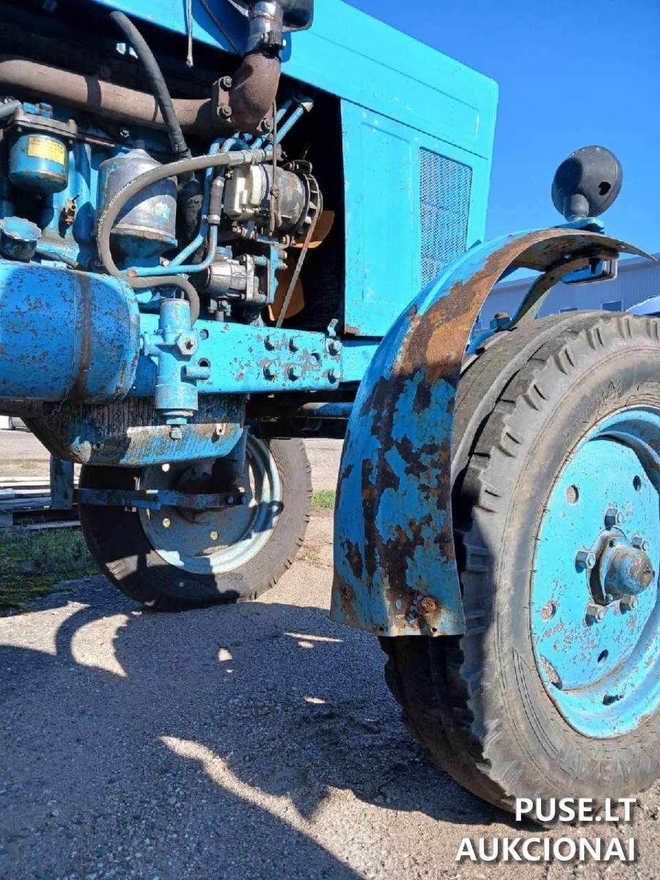 Traktorius apie 1972 m.; priekinis tiltas nevaromas; variklis dūmina; pastebimas aušinimo skysčio pratekėjimas; reikalingi akumuliatoriai.