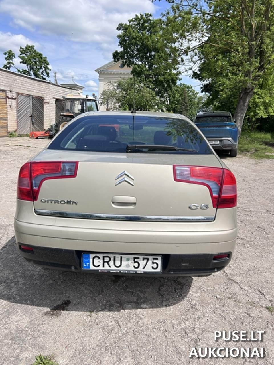 Parduodamas lengvasis automobilis Citroen C5. Identifikavimo Nr. (VIN): VF7RCRFJC76814759; pirmosios registracijos data 2007-05-23. Variklio galia 103 kW, darbinis tūris 1997 cm3, degalų rūšis benzinas, greičių dėžė mechaninė, spalva ruda, vietų skaičius 5. Rida 195 363 km. Techninė apžiūra negalioja, draudimo nėra. Automobilis važiuojantis. Defektai: galinės arkos paveiktos korozijos, nežymus įlenkimas priekinio dešinės pusės sparno prie žibinto, apraižytas priekinis bamperis, neveikiantis akumuliatorius, užsidega ABS ir SRS lemputės.