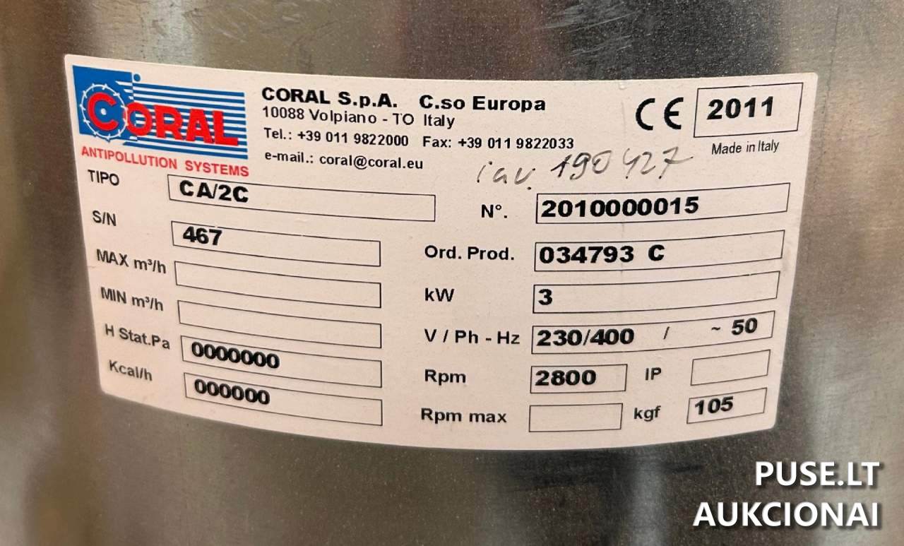 Drožlių nusiurbimo įrenginys CA/2C Utenoje, Aukštaičių g. 5 – pradinė kaina 400 EUR
