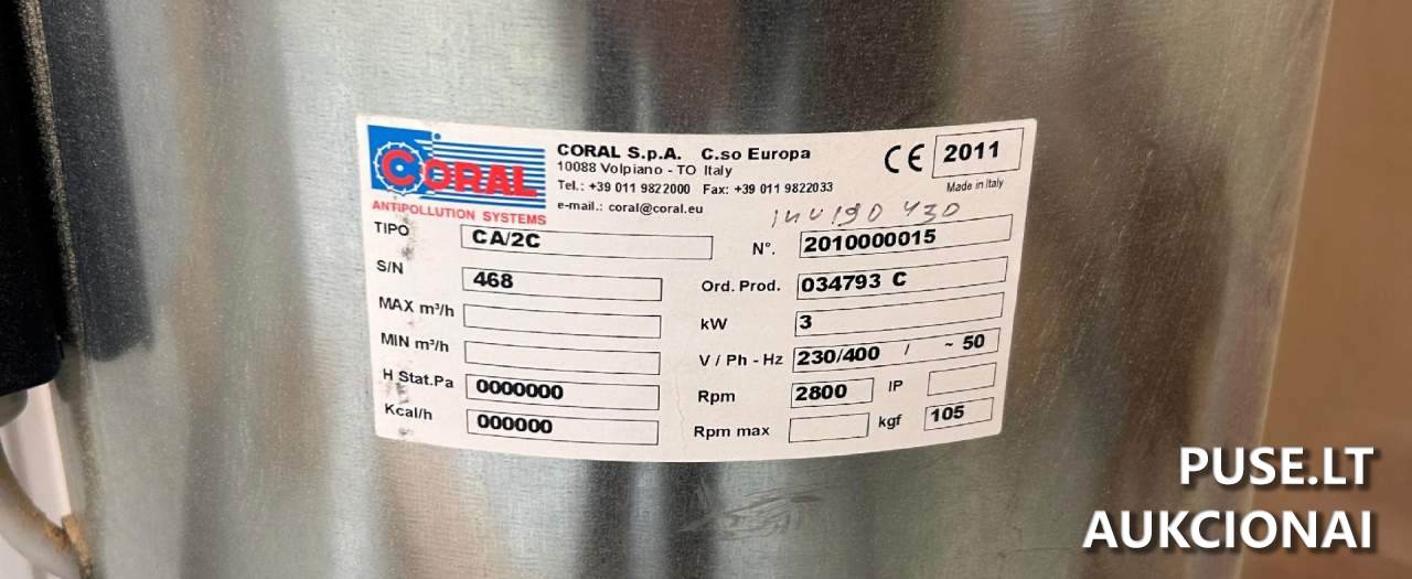 Parduodamas drožlių nusiurbimo įrenginys (CA/2C) per kitos kategorijos aukcioną. Pradinė kaina 400 EUR, garantinis įnašas 100 EUR. Aukcionas vyksta internetu: registracija nuo 2025-11-21 iki 2025-11-24, aukcionas prasideda 2025-11-26 09:00 ir baigiasi 2025-11-27 13:59:59. Apžiūra organizuojama 2025-11-19 ir 2025-11-20 12:00–15:00 adresu Aukštaičių g. 5, Utena. Aukciono laimėtojas perveda visą Turto kainą pavedimu per 5 darbo dienas nuo aukciono pabaigos; garantinis įnašas įskaitomas kaip dalinė įmoka. Sąskaita ir Turto perdavimas-perėmimas vykdomi per 5 darbo dienas nuo visiško atsiskaitymo su organizatoriumi. Sąskaitos rekvizitai: Utenos regioninis profesinio mokymo centras, įmonės kodas 111965099, sąskaitos Nr. LT50 4040 0636 1000 1488, LR Finansų ministerija, banko kodas 40400. Organizuotojas: Utenos regioninis profesinio mokymo centras (kodas 111965099).