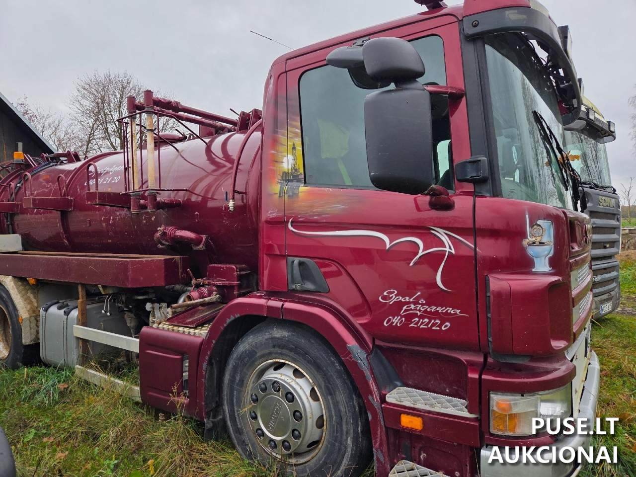 Parduodama 2002 metų balandžio 23 dienos gamybos krovininė transporto priemonė SCANIA P 114 GB, pradinė kaina siekia 12000 EUR. Tai yra pirmosios kategorijos krovininis automobilis, kurio bendroji masė viršija 12 tonų. Transporto priemonė klasifikuojama kaip N3 kategorija, kėbulo tipas - specialios paskirties transporto priemonė (konkrečiai, siurbimo automobilis). Automobilio spalva yra raudona.