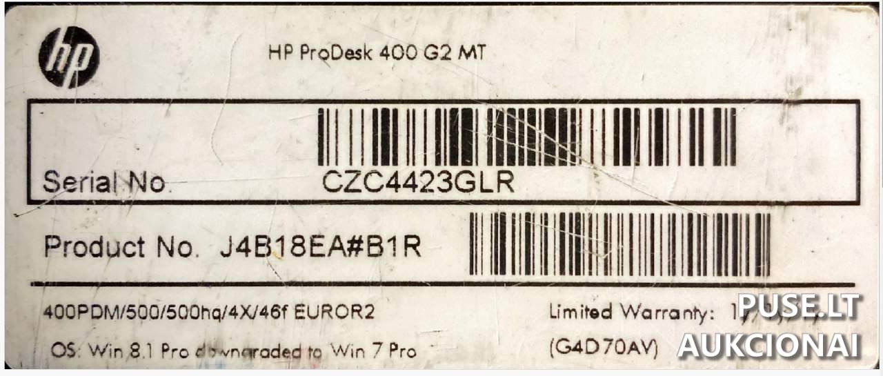 Parduodamas dėvėtas kompiuteris HP ProDesk 400 G1, klasifikuojamas kaip buitinė technika iš kitų pirminių aukcionų. Šis įrenginys yra techniškai pasenęs ir nusidėvėjęs. Svarbu paminėti, kad iš kietojo disko yra išimtas, ir kompiuteris parduodamas be operacinės sistemos bei bet kokios programinės įrangos.