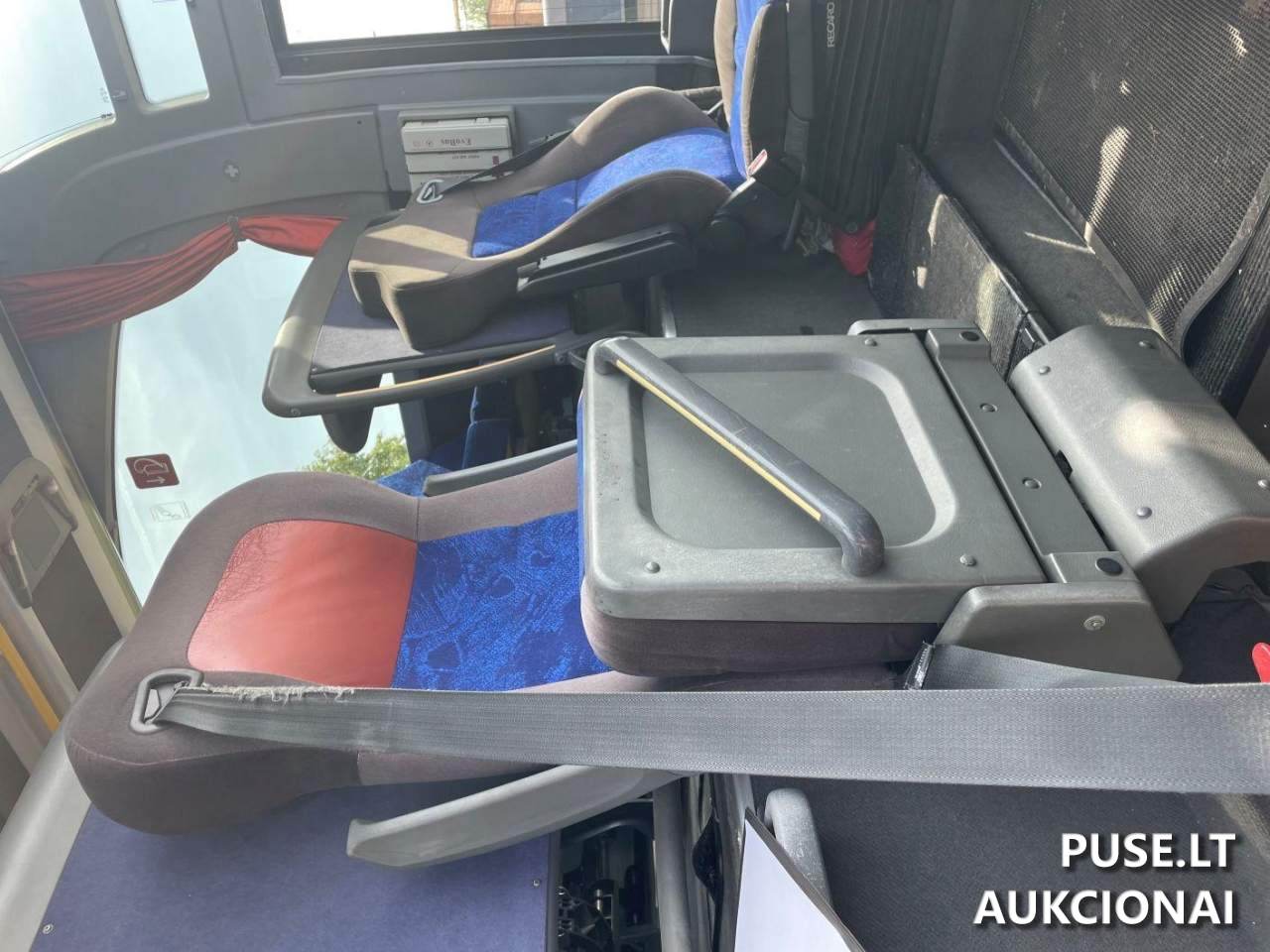 Autobusas yra su 46 sėdimomis vietomis ir patogumais: borto kompiuteriu, pastovaus greičio palaikymo sistema, oro kondicionieriumi, radiju, elektriniais veidrodėliais, tualetu, staliukais, dviem monitoriais ir gido sėdyne. Visos sėdynės turi saugos diržus.