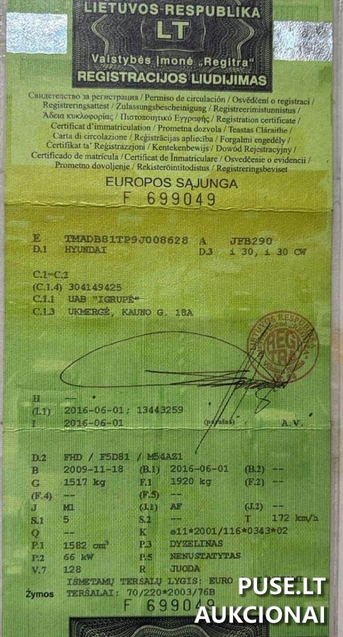 Vyksta antstolių varžytynės parduodant keleivinį automobilį HYUNDAI i 30 (taip pat nurodyta HYUNDAI i 30 CW) pradinė kaina yra 1140 EUR. Šis turto objektas parduodamas antrinėje rinkoje per oficialias varžytynes.