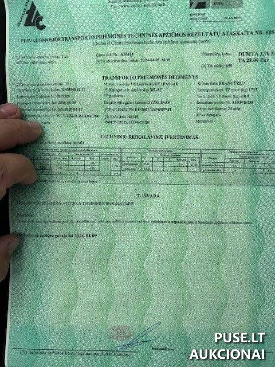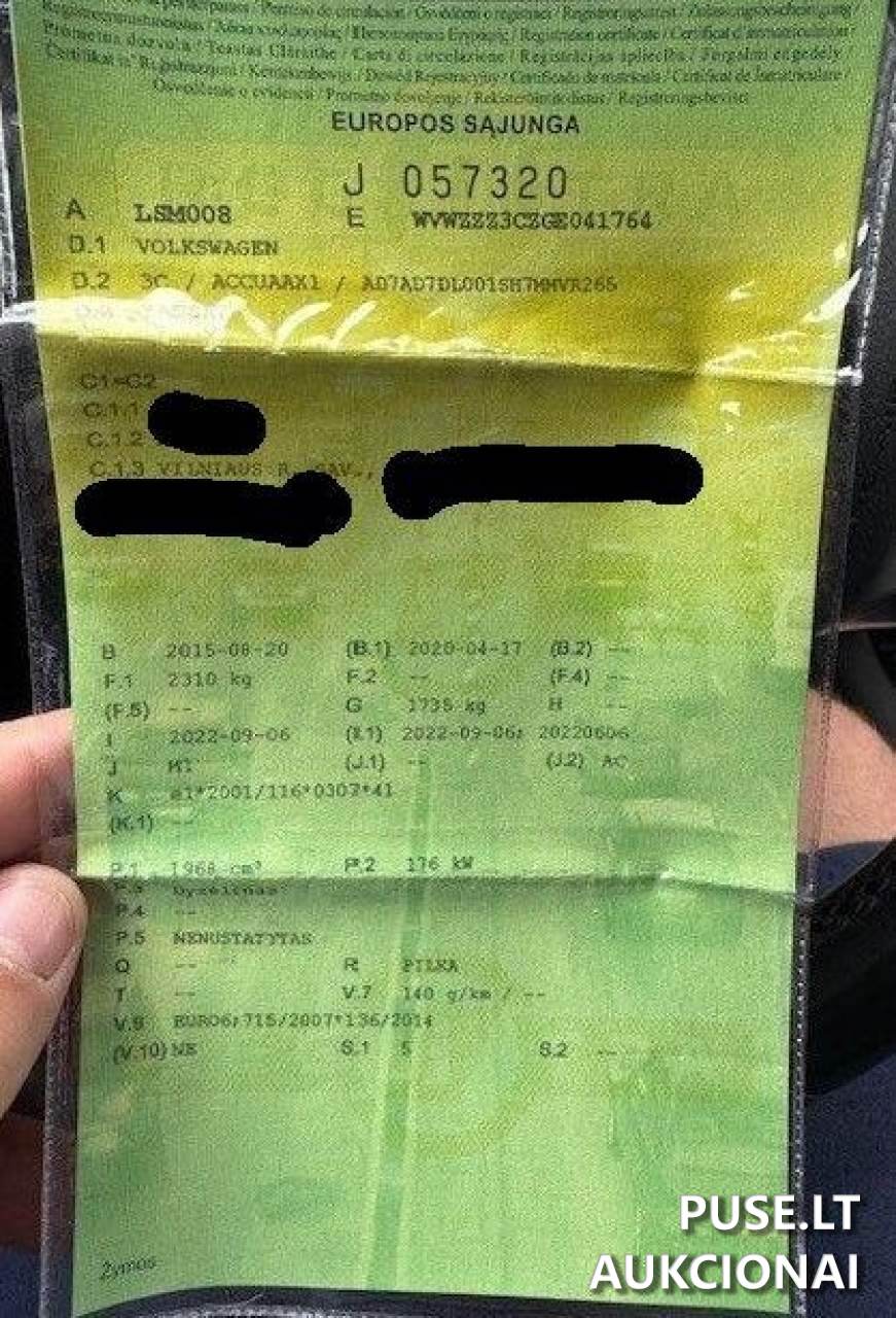 Parduodamas pirmosios registracijos 2015 metų lengvasis automobilis VW Passat, kurio pardavimas vyksta vykstančių nemokumo administratorių varžytynių būdu. Automobilis turi 1968 cm2 darbinio tūrio variklį, kurio galia siekia 176 kW. Dokumentuose nurodyta rida yra 253 513 kilometrų. Būklė pardavimo metu atitinka principą parduodama tokia, kokia yra varžytynių metu. Varžytynių vykdytojas jokių garantijų dėl transporto priemonės vertės, būklės ar kitų savybių tiesiogiai ar netiesiogiai neteikia.