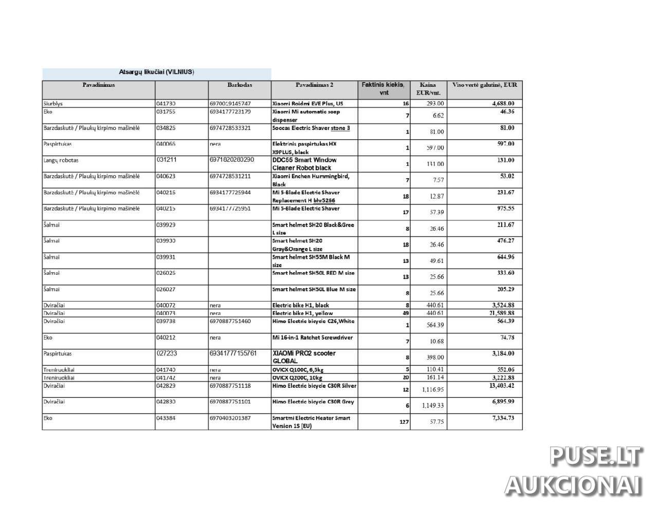 Parduodamos įvairios prekių atsargos Vilniaus mieste, vykstant antstolių varžytynėms. Šis pardavimas yra antrosios kategorijos turto pardavimas. Pradinė kaina nustatyta 30000 EUR.