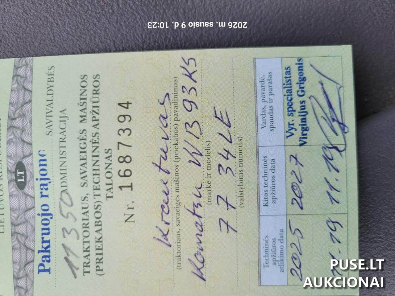 Šis technikos vienetas parduodamas Organizatoriaus UAB "Pakruojo vandentiekis" (įmonės kodas 167922698) vardu.