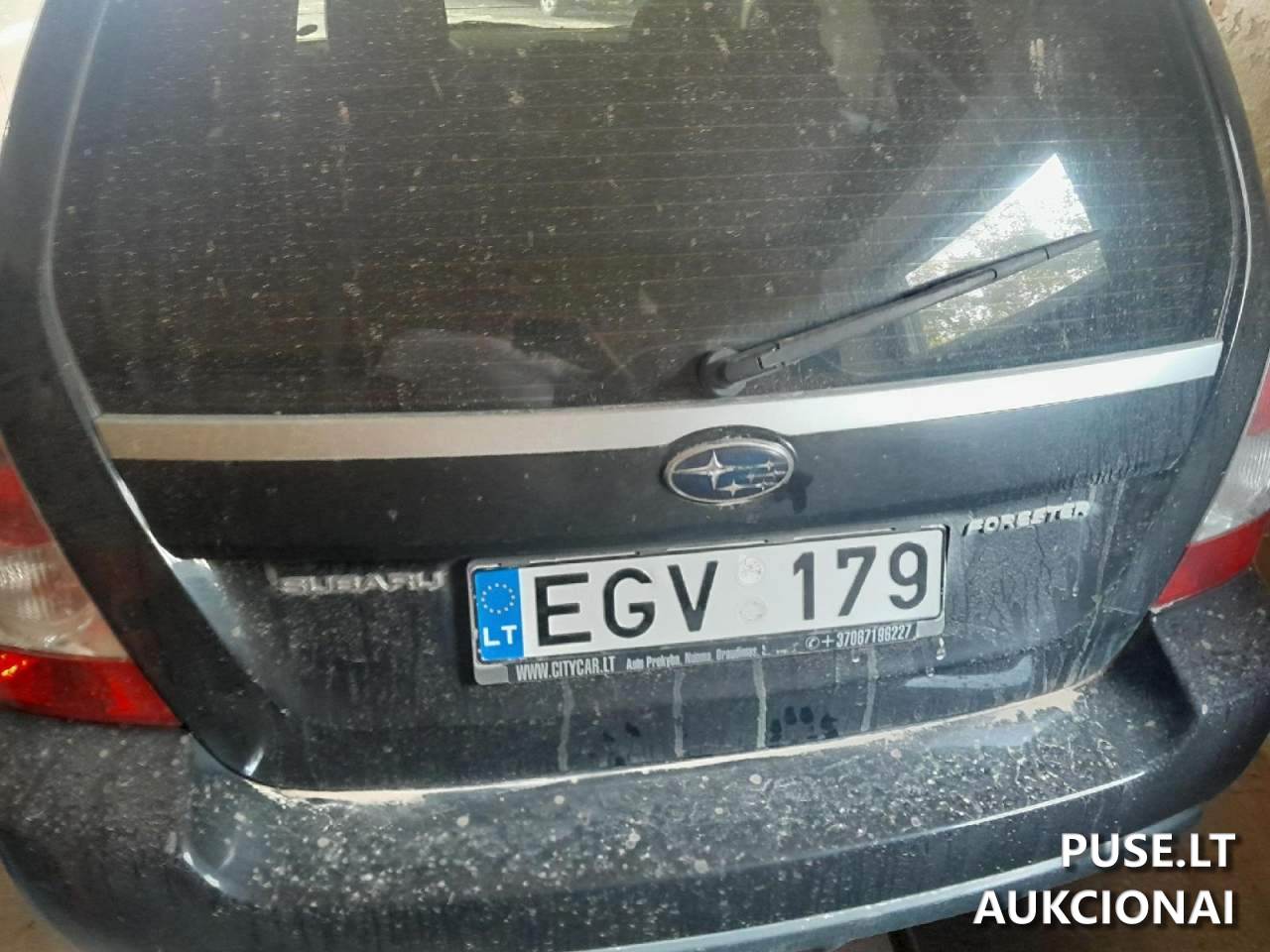Parduodamas lengvasis automobilis SUBARU FORESTER, 2006 metų gamybos, siūlomas antrinio aukciono metu. Transporto priemonė pažymėta unikaliu registracijos numeriu EGV 179. Automobilio darbinis tūris yra 1994 cm3, variklio galia 116 KW. Rida iki aukciono paskelbimo siekia 370000 kilometrų.