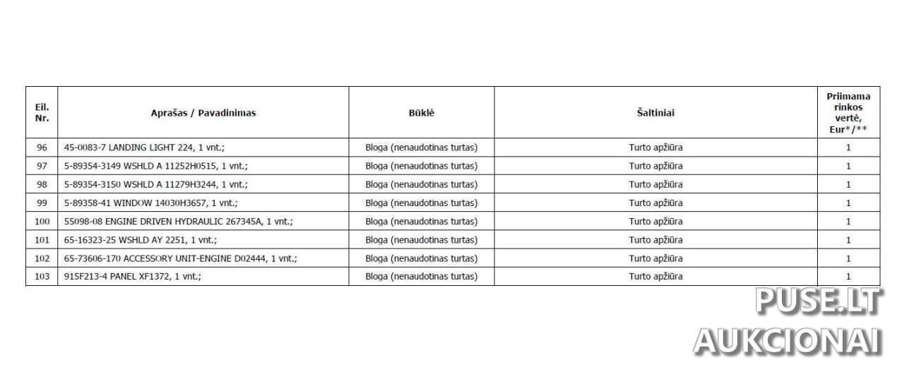 Kokia yra šio kito kilnojamojo turto (100 pozicijų) pradinė kaina aukcione?