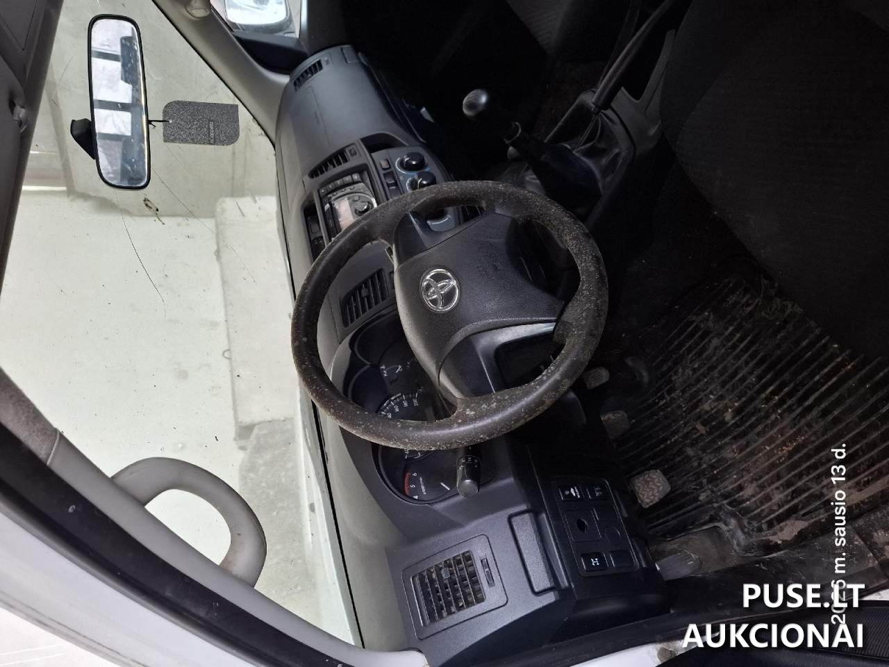 Parduodamas lengvasis automobilis Toyota Hilux aukcione. Tai pirminis kiti aukcionai. Pradinė turto pardavimo kaina su PVM yra 9700 EUR. Automobilis yra po avarijos, todėl jo bendra techninė būklė vertinama kaip labai bloga, konstrukcija pažeista, o rėme matoma paviršinė korozija. Dėl šių defektų automobilis netinkamas įprastai eksploatacijai ir gali būti tinkamas tik dalimis arba utilizavimui.