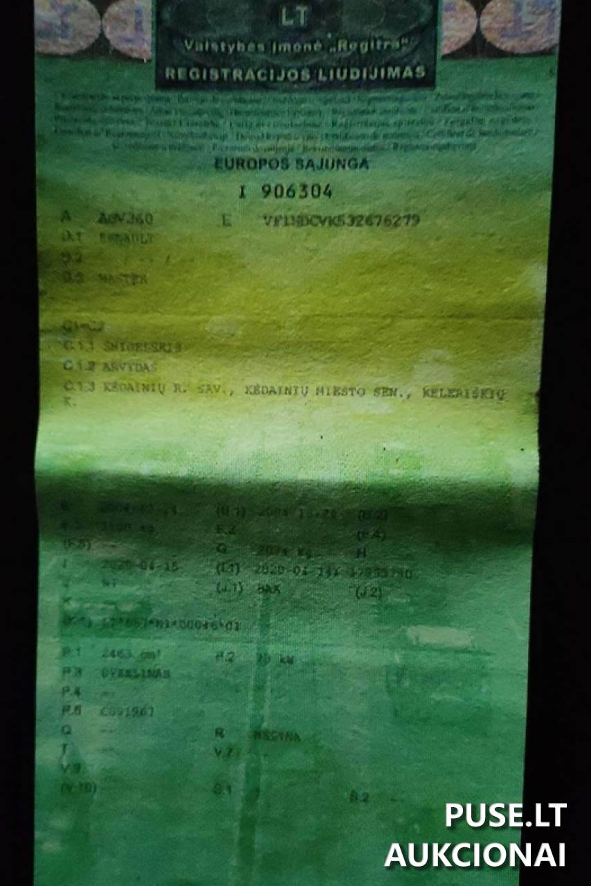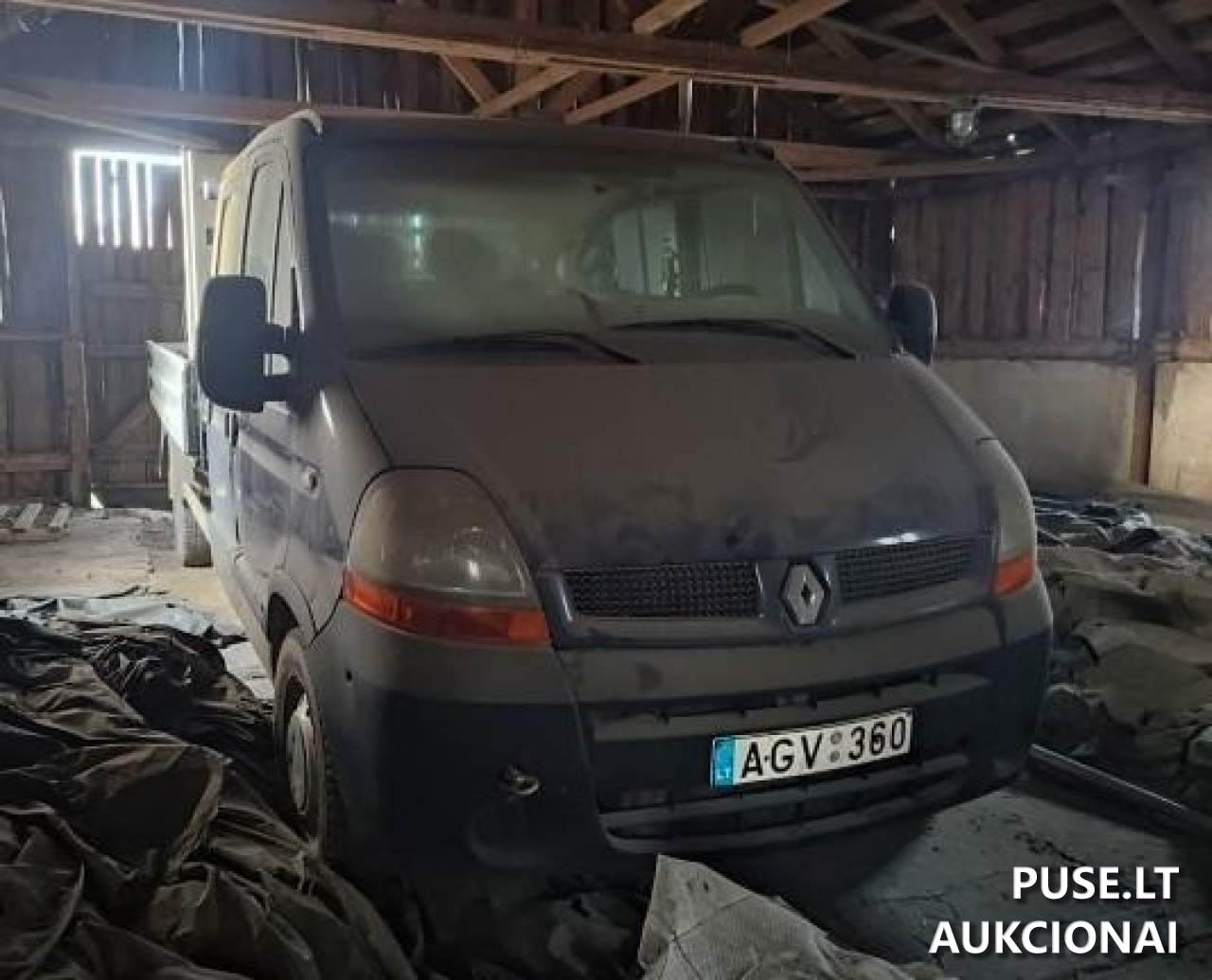 Parduodamas krovininis automobilis RENAULT MASTER, pradinė kaina 600 EUR, vykdant nemokumo administratorių varžytynes. Šis transportas klasifikuojamas kaip krovininis automobilis iki 3,5t. Pagaminimo metai - 2004 gruodžio 24 d. Kuro tipas yra dyzelinas, pavarų dėžė mechaninė. Automobilis šiuo metu techniškai netvarkingas, nevažiuojantis, sugedęs ir neeksploatuojamas.