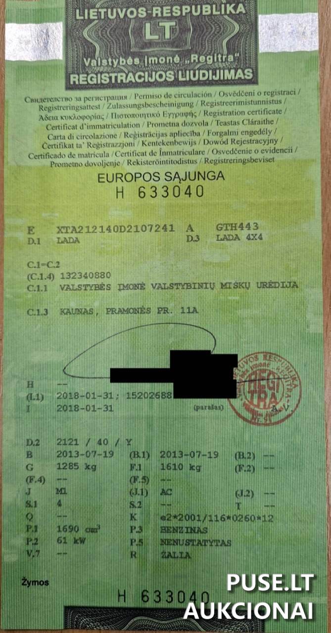 Parduodamas lengvasis automobilis Niva Lada 4x4, kategorizuojamas kaip pirminis kitų aukcionų objektas. Pradinė kaina siekia 1170 EUR. Automobilis šiuo metu neeksploatuojamas ir yra prastos techninės būklės, tinkamas tik remontui arba dalims.