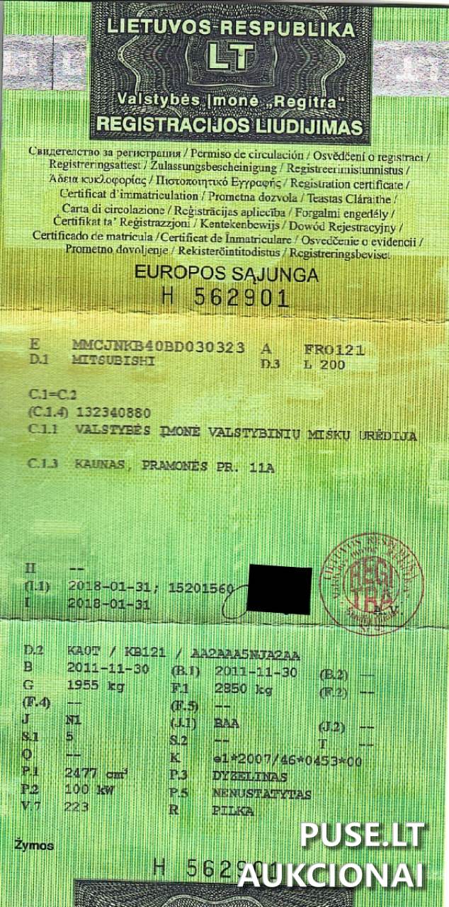 Siūlomas parduoti 2011 metų gamybos dyzelinis automobilis Mitsubishi L200, kurio pradinė pardavimo kaina aukcione yra 5800 EUR (su PVM). Ši transporto priemonė yra nurodyta kaip turinti blogą techninę būklę, todėl pirkėjai turėtų atsižvelgti į remonto poreikį.