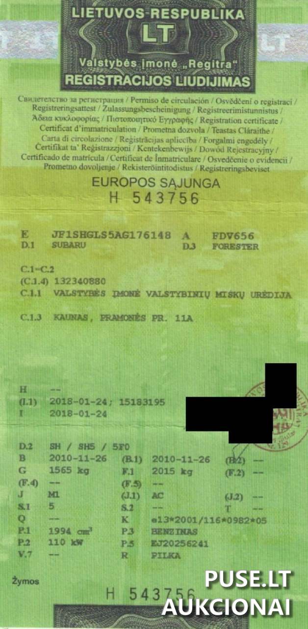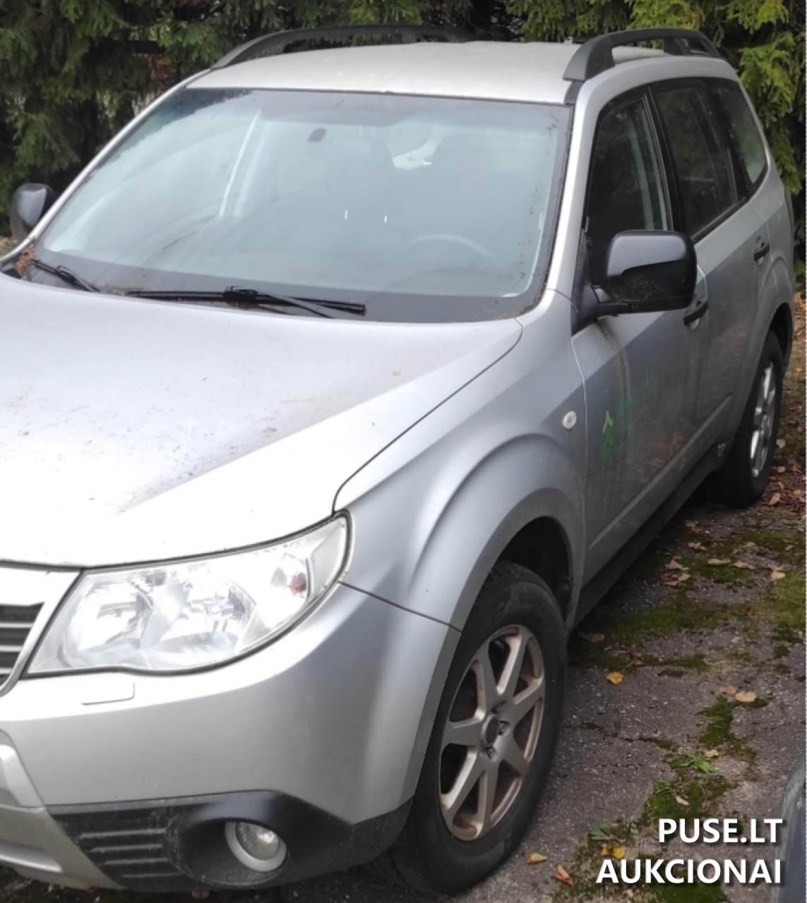 Parduodamas naudotas lengvasis automobilis Subaru Forester, 2010 metų gamybos, aukcione. Šiuo metu transporto priemonės techninė apžiūra nebegalioja. Automobilis turi defektų, įskaitant įlenkimus ir įbrėžimus. Ypatingas dėmesys skiriamas variklio gedimui, kuriam remontas pripažintas netikslingu – bendra turto būklė įvertinta kaip bloga.