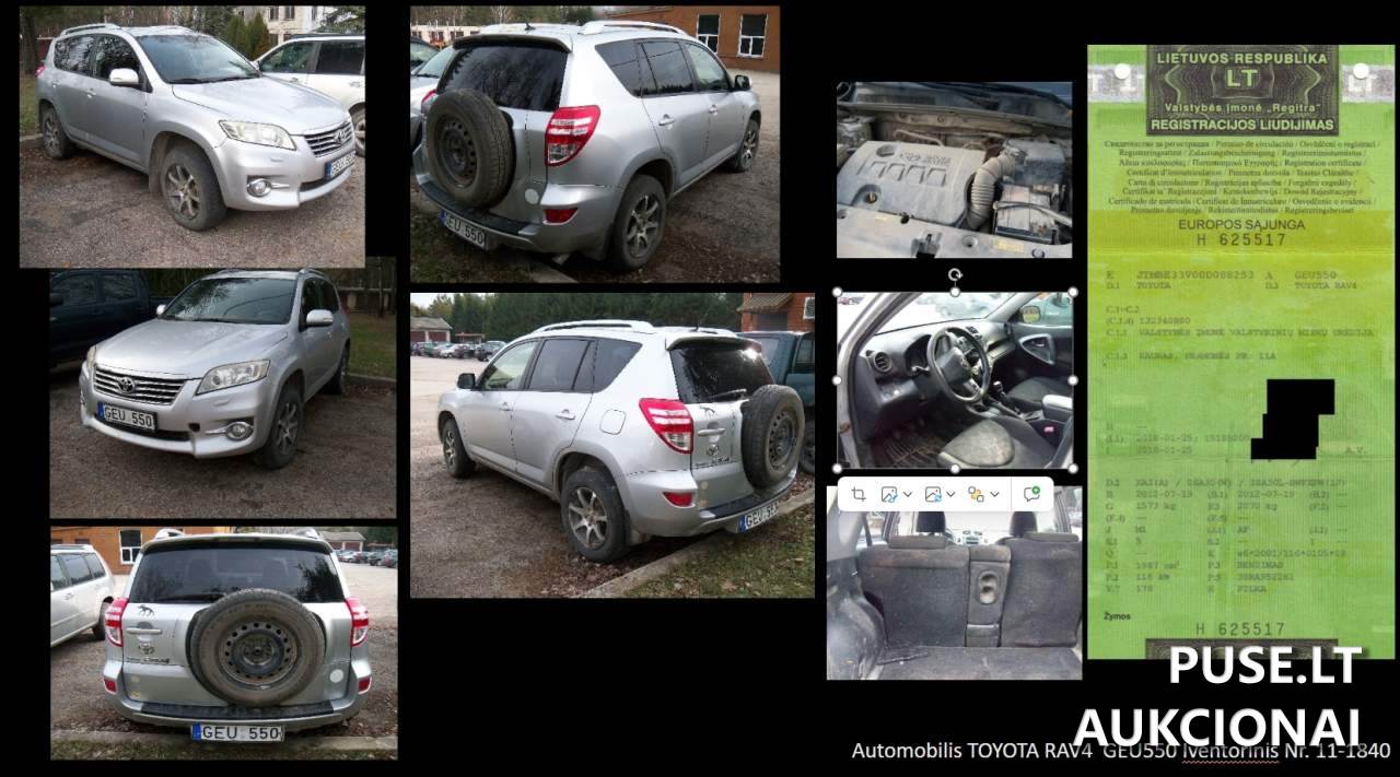 Parduodamas lengvasis automobilis Toyota RAV4, pagamintas 2012 metais, siūlomas pirminiame kaina per Valstybės įmonės Valstybinių miškų urėdija organizuojamą aukcioną. Pradinė šio benzinu varomo automobilio kaina yra 9600 EUR. Automobilio identifikavimui nurodomas inventoriaus numeris 11-1840.