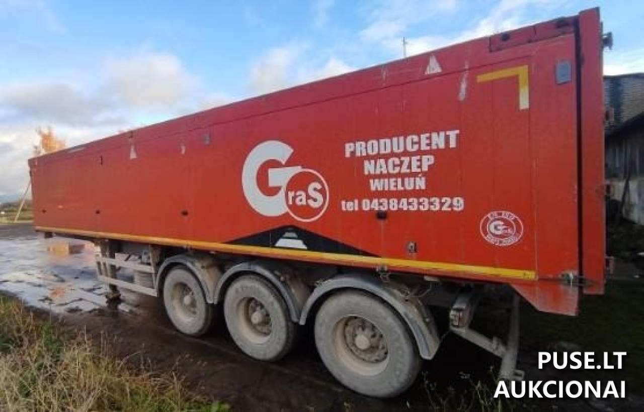 Parduodama naudota viena ašinė žemąkėlinė priekaba GRAS GS 44, klasifikuojama kaip priekaba arba puspriekabė virš 10 tonų, vykstančioje nemokumo administratorių varžytynėse. Bendra priekabos masė siekia 6600 kg, o didžiausia leidžiama masė yra 27000 kg. Pirmoji registracija – 2008 m. gegužės 16 d. Pardavimo kaina prasideda nuo 9000 EUR.