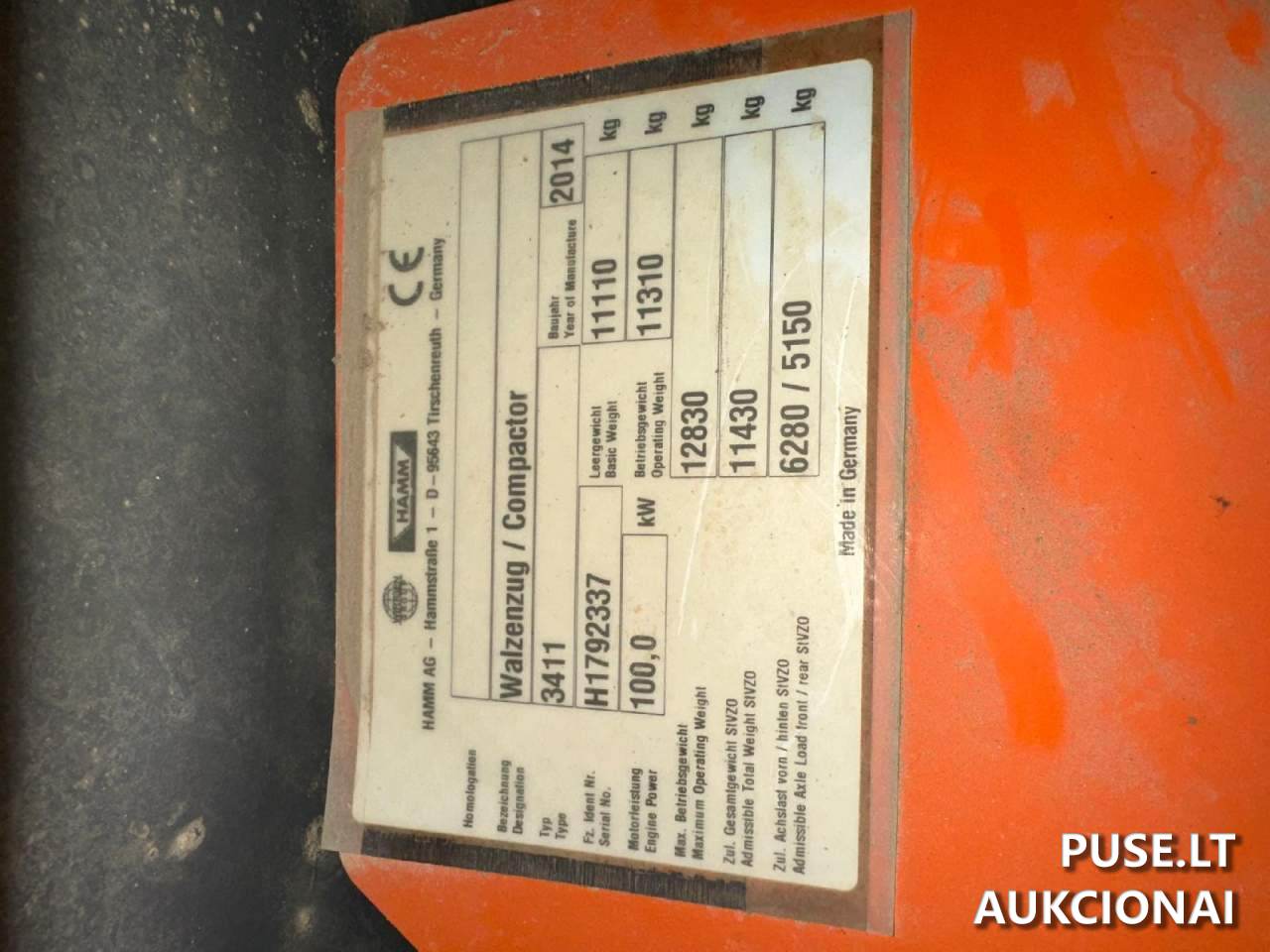 Parduodamas vibrovolas Hamm 3411 statybų technikos aukcione, kurio pradinė kaina siekia 60000 EUR. Šis įrenginys yra parduodamas vykdant bankroto procedūrą kaip priverstinis turto pardavimas ir priklauso buvusiam savininkui Uždarajai akcinei bendrovei "KVĖDARSTA" (įmonės kodas 176597054). Aukcionas vyksta Nemokumo administratorių varžytynėse, o PVM objektas yra taikomas.