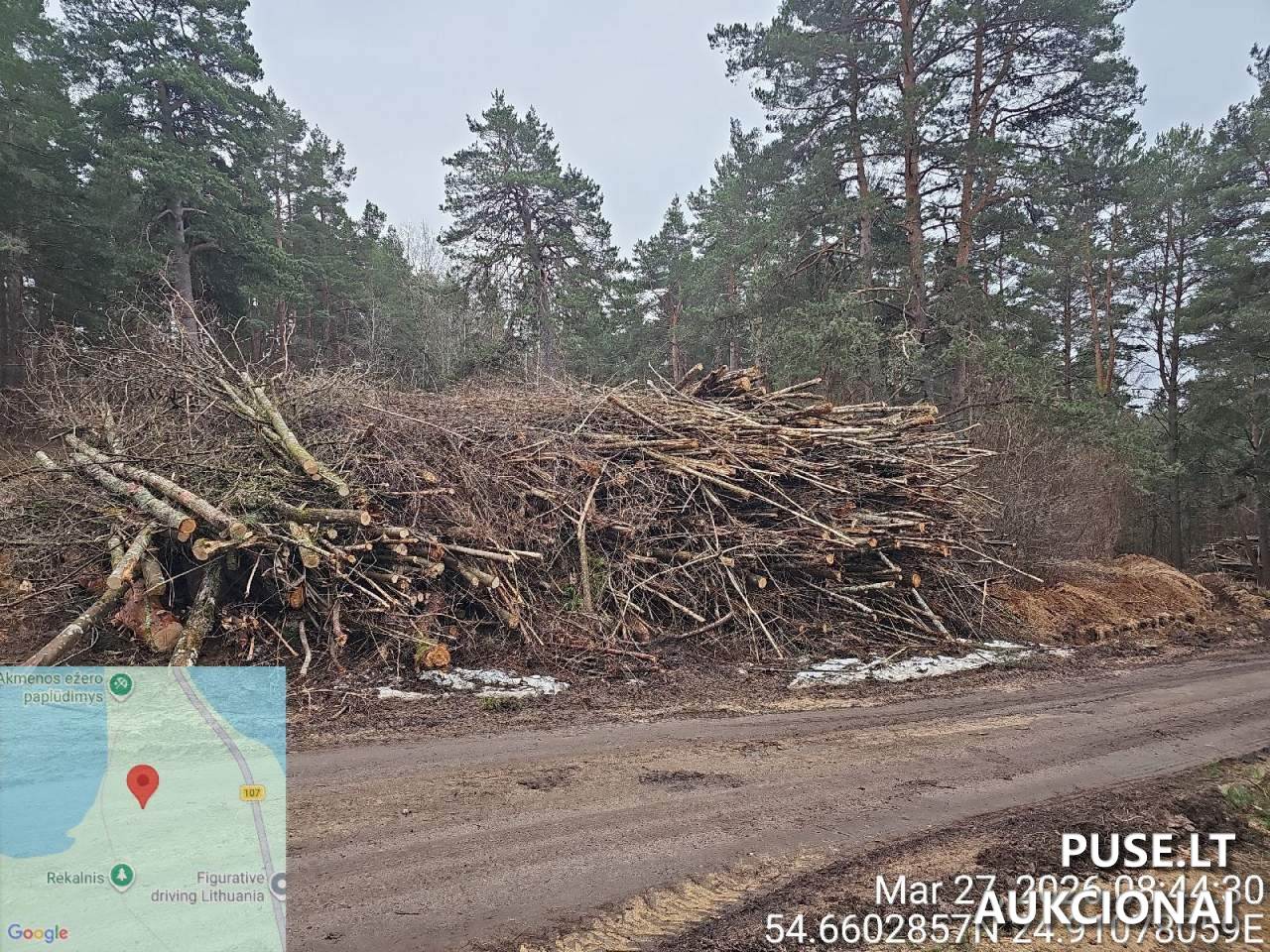 Kur yra sandėliuota žaliavinė mediena ir kokios jos koordinatės?
