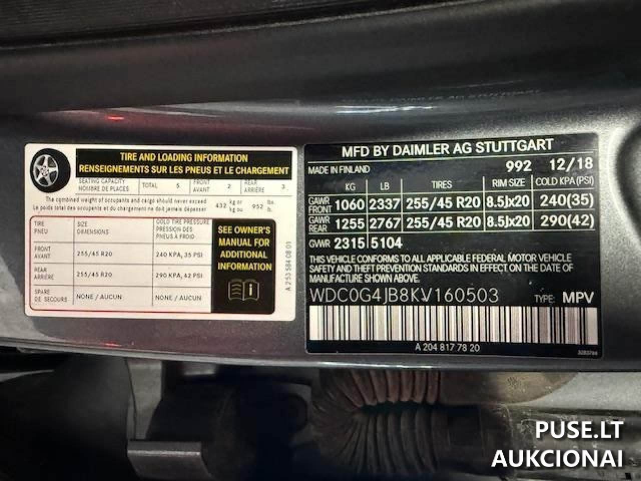 VIN kodas yra WDC0G4JB8KV160503, automobilis pagamintas 2019 metais.