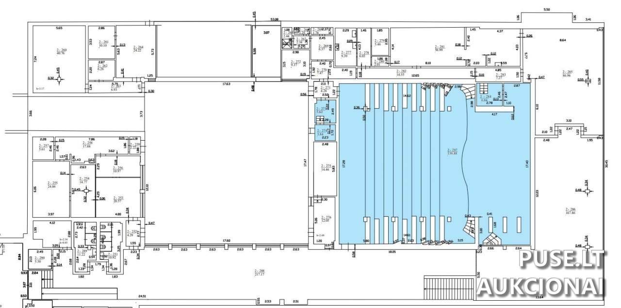 Bendra nuomojama 422,52 kv. m. ploto, įskaitant bendrojo naudojimo patalpas. Nuomojami specifiniai segmentai: 2-273, 2-274, 2-284 ir 2-287, kurių bendras plotas siekia 356,16 kv. m. Patalpos išnuomojamos esamos būklės, suteikiant galimybę būsimam nuomininkui jas įsirengti pagal individualius poreikius, naudojant nuomininko lėšas.