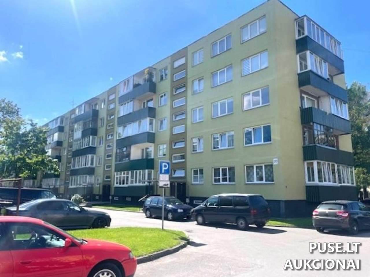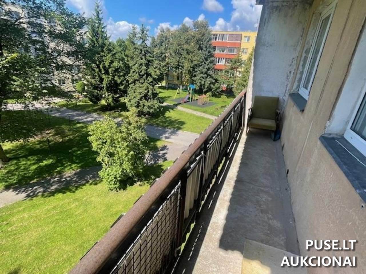 Buto pradinė kaina aukcione yra 30800 EUR. Bendras plotas yra 29.18 kv. m ir jam priklauso rūsys (bendro naudojimo patalpa).