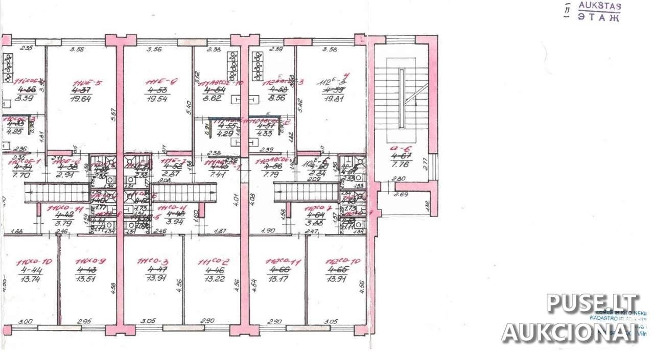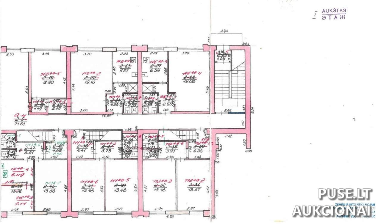 Bendra parduodamo turto - buto ir priklausančių dalių - plotas yra 13.48 kv. m.