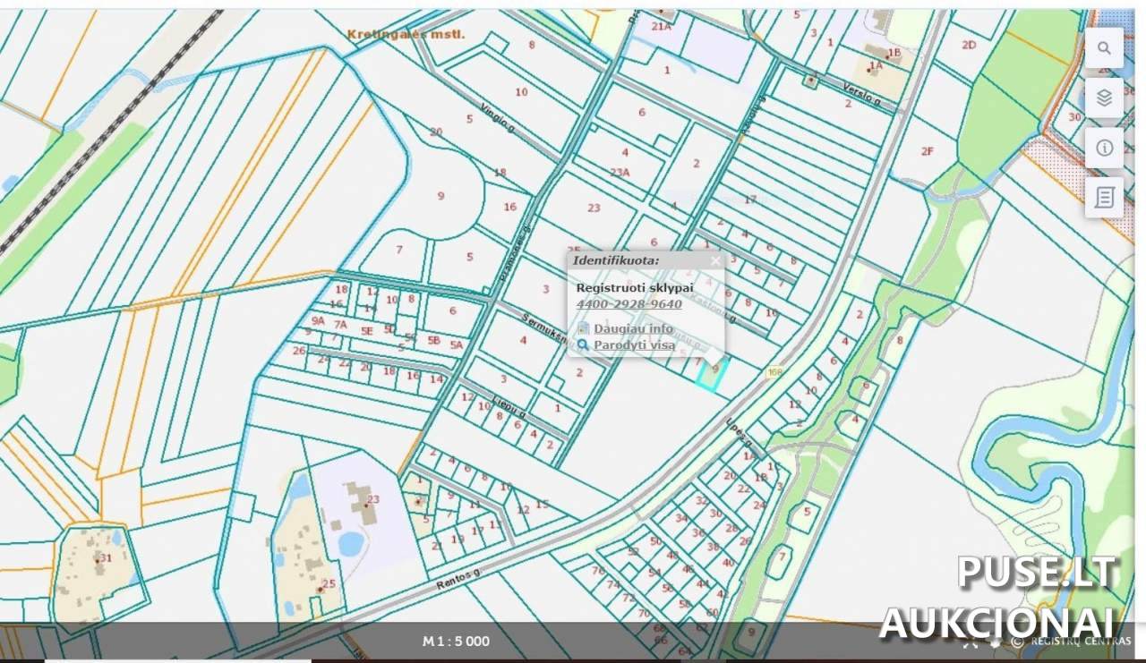 Antrinių pakartotinių varžytynių būdu parduodamas 0,1264 hektaro (12,64 aro) žemės sklypas Klaipėdos rajono savivaldybėje, Kretingalės miestelyje, Pušų gatvėje 9. Šis nekilnojamasis turtas, kurio unikalus numeris 4400-2928-9640 ir kadastro numeris 5535/0004:219, parduodamas visas – 1/1 dalimis.