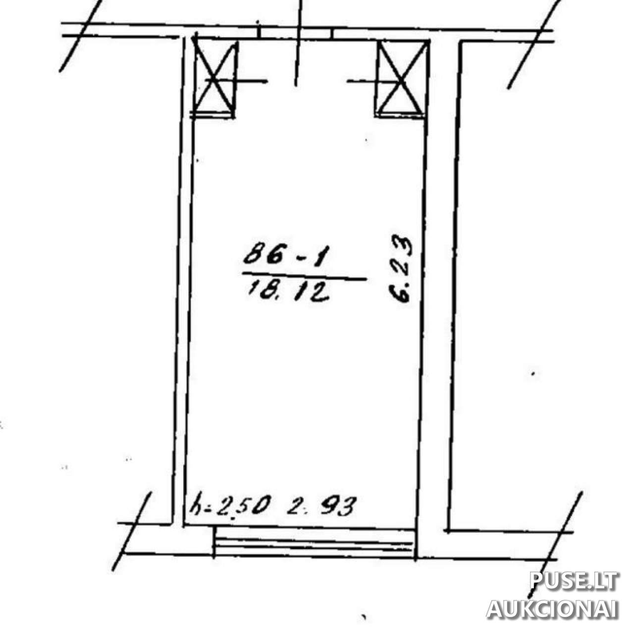 Parduodamo buto bendras plotas yra 18.12 kv. m, papildomai tenka 7.62 kv. m bendro naudojimo patalpų dalis.