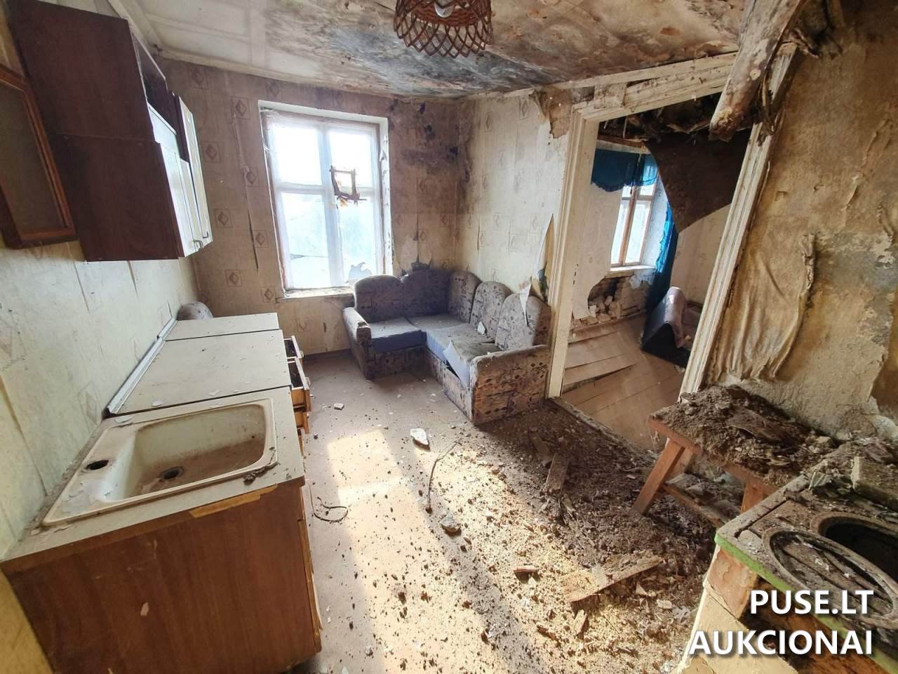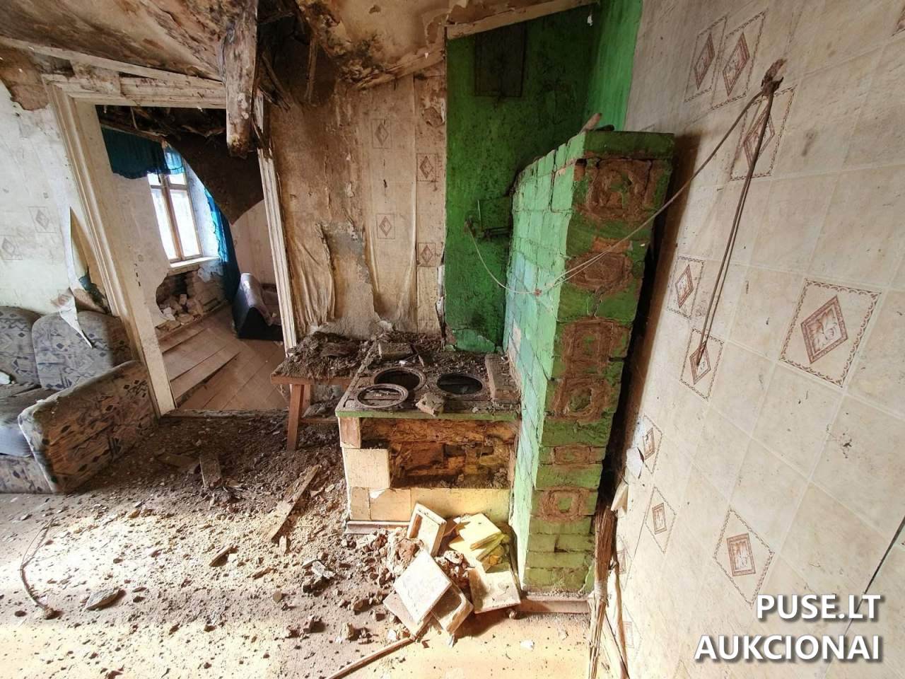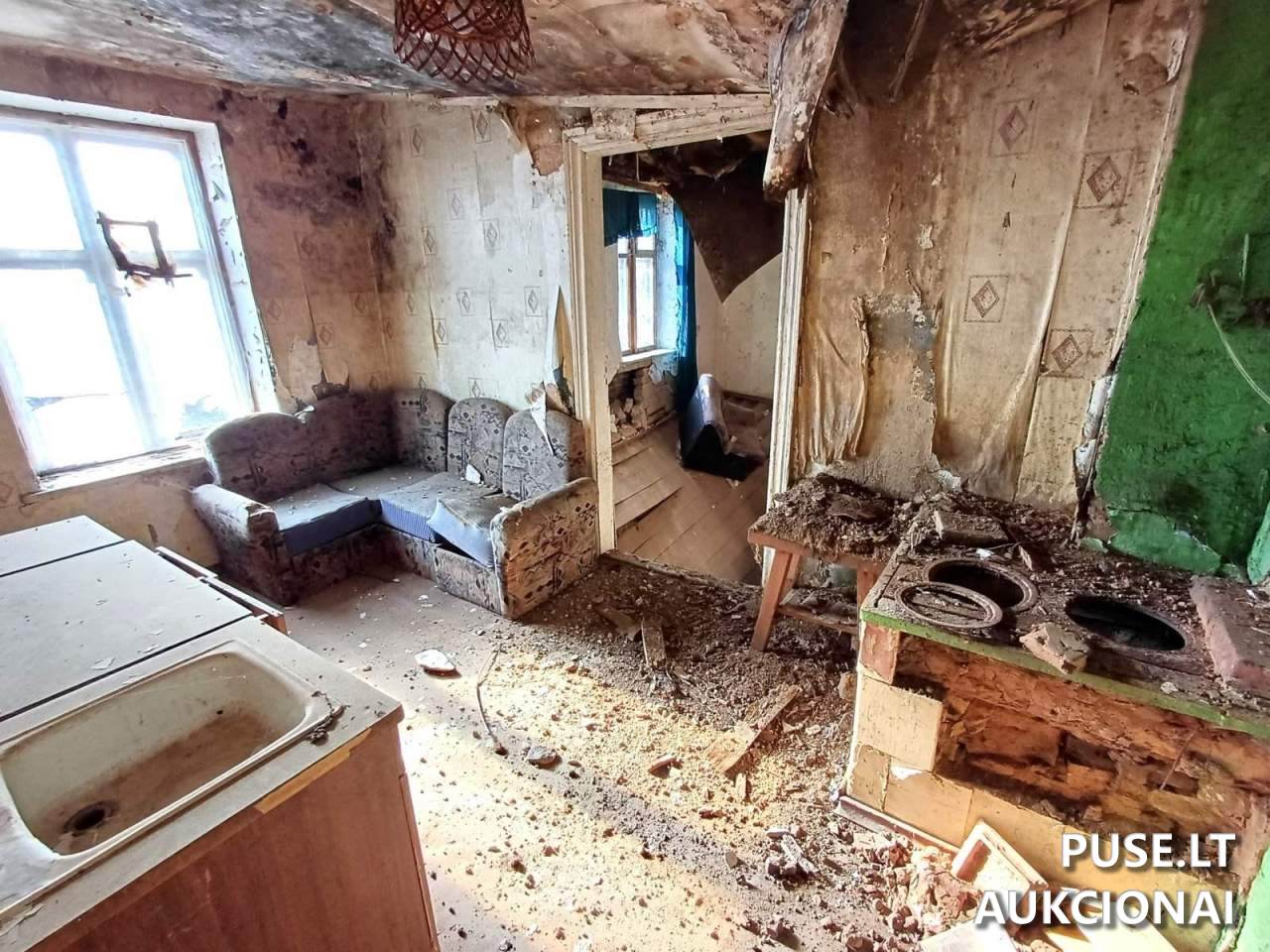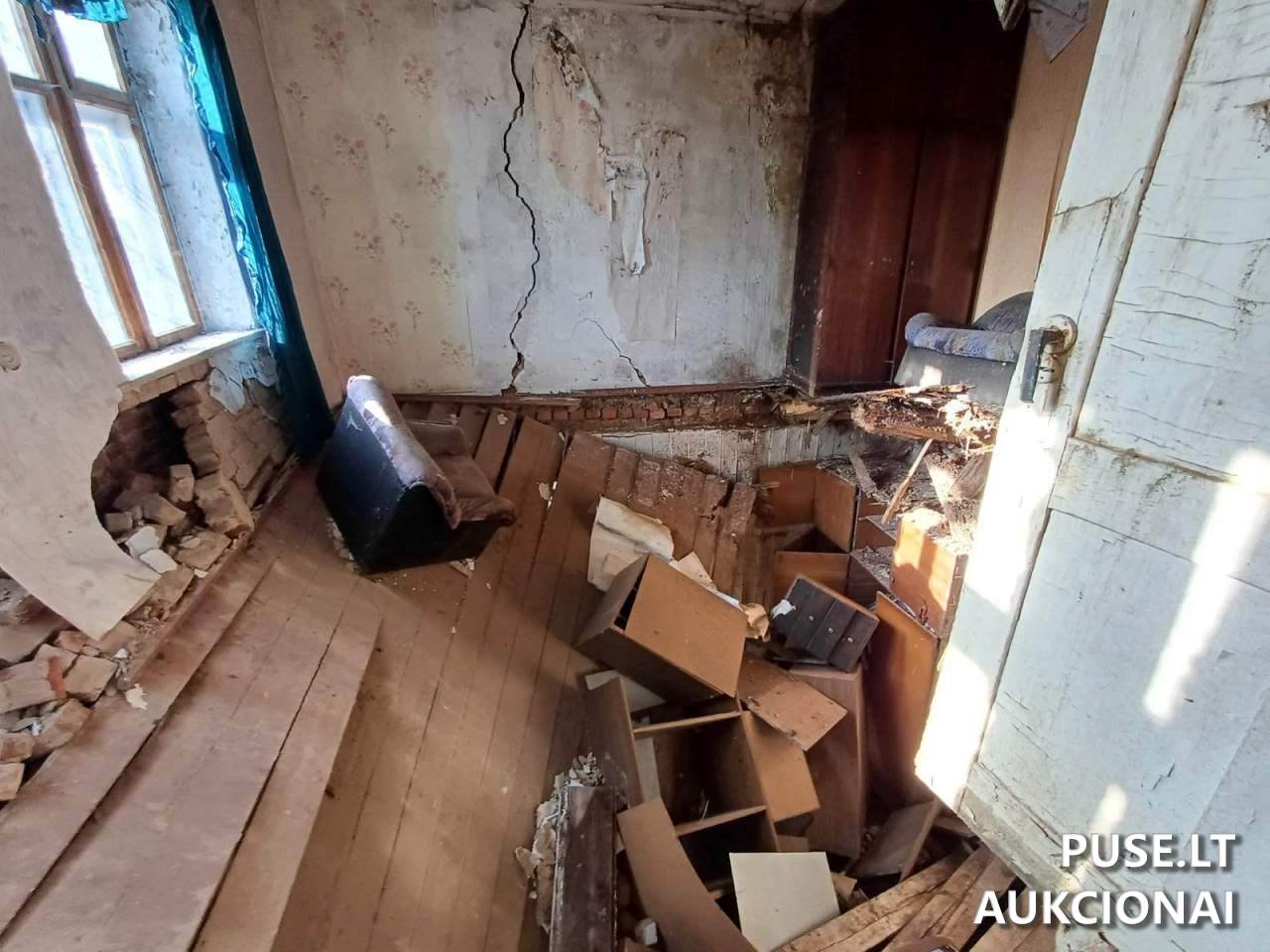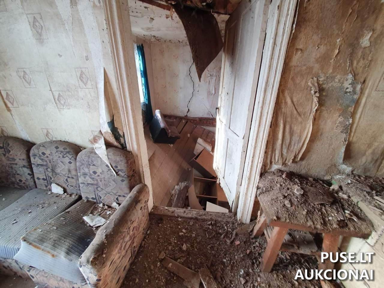 Pastatas pripažintas avariniu, bute nėra elektros, parduodama esama fizinė būklė, o žemės sklypas nėra suformuotas ir neperleidžiamas.