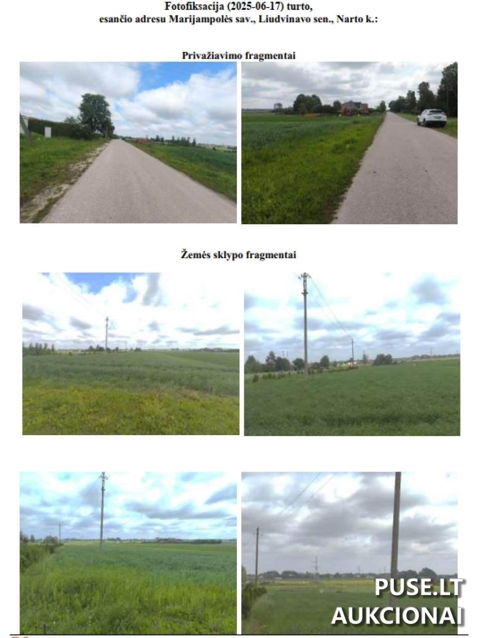 Parduodama 5/6 dalis (0,1333 ha) žemės ūkio paskirties žemės sklypo, kurio bendras plotas yra 0,1600 ha. Šis nekilnojamasis turtas yra parduodamas Marijampolės savivaldybėje, Narto kaime, Liudvinavo seniūnijoje, ir yra siūlomas per antstolių varžytynes. Objekto kadastrinis numeris – 5160/0001:274, unikalus numeris – 4400-0313-0434. Šiuo metu disponavimo teise yra nustatytas apribojimas.