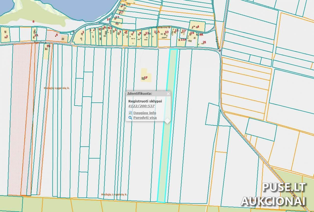 Viso parduodamo sklypo plotas yra 2,500 hektaro. Pardavimo objektas atitinka žemės ūkio paskirties žemės sklypo naudojimo būdą, klasifikuojamą kaip kiti žemės ūkio paskirties žemės sklypai. Unikalus šios parduodamos dalies registracijos Nr. 4400-1821-4476, kadastrinis numeris 4122/0200:537.