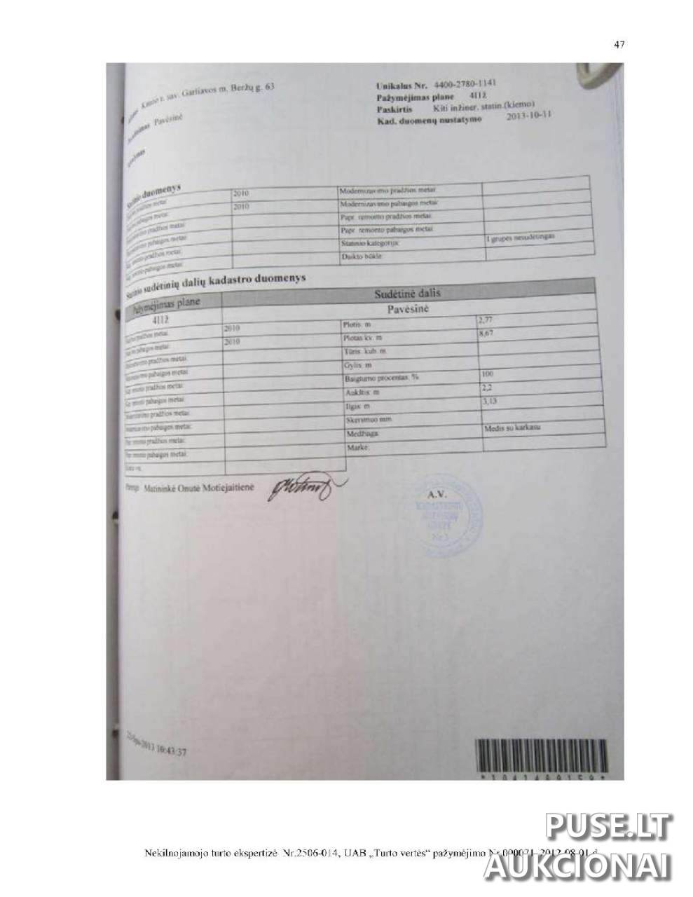 Su turto vertinimo ataskaita galima susipažinti Antstolės Sonatos Vaicekauskienės kontoroje Nemuno g. 14-1, Kaune.