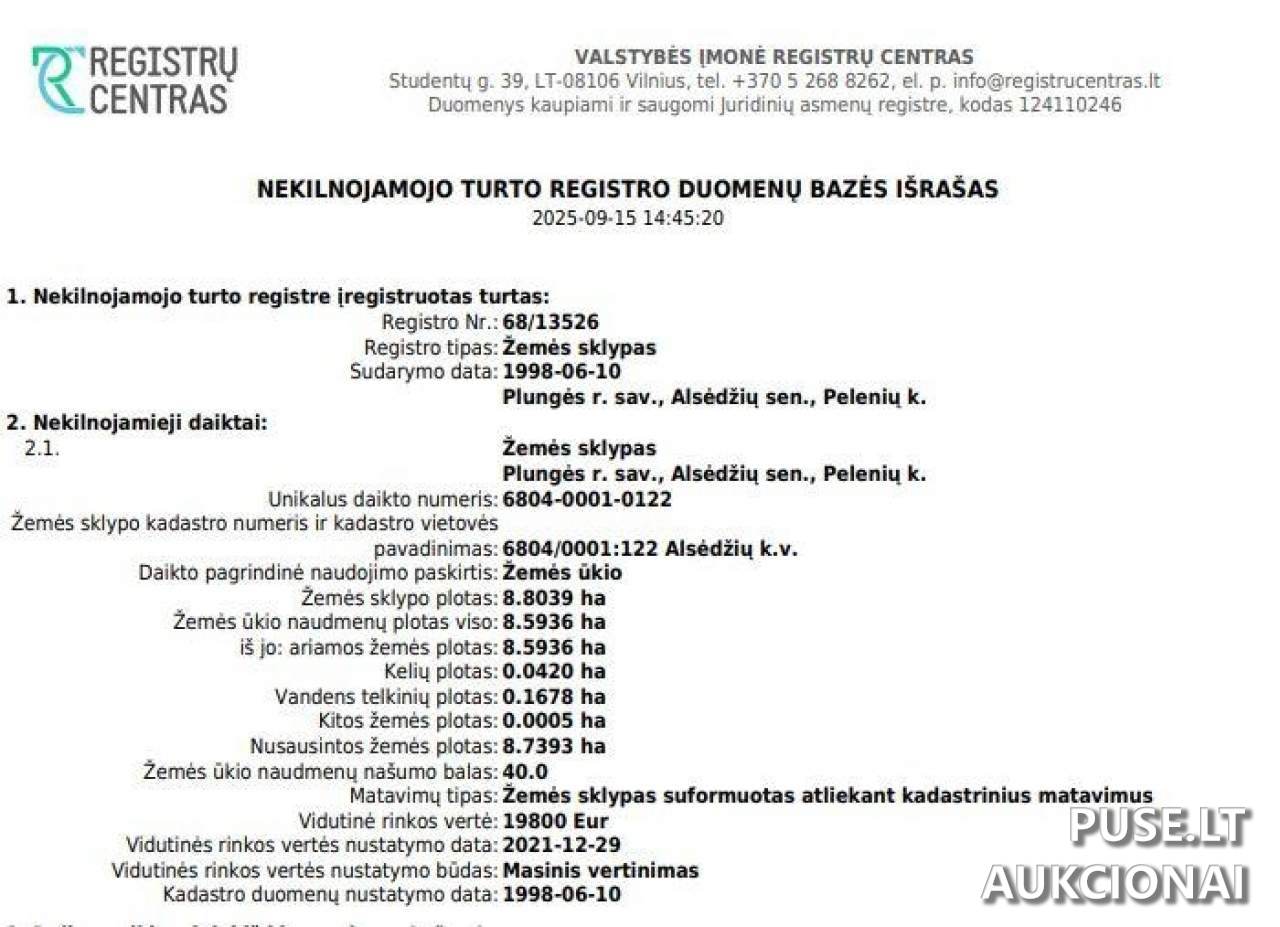 Parduodamos 1/2 žemės sklypo dalies pradinė kaina yra 12040 EUR.
