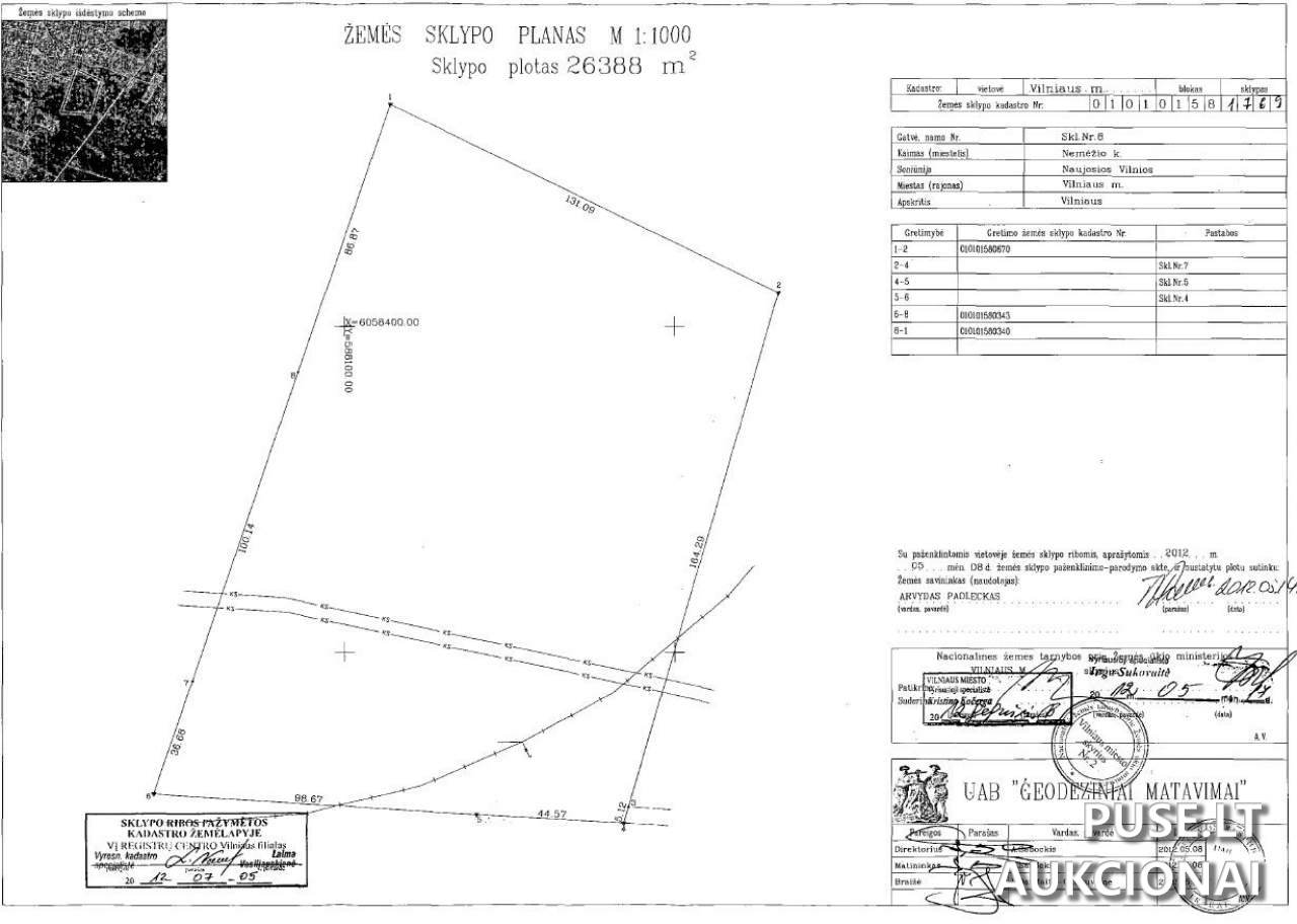 Parduodamas 2,6388 hektaro ploto kitos paskirties žemės sklypas Vilniaus mieste, Vilniaus miesto savivaldybėje, parduodamas vykdant antstolių varžytynes. Šis investicinis objektas turi unikalų Nr. 4400-2395-6205 ir kadastro Nr. 0101/0158:1769.
