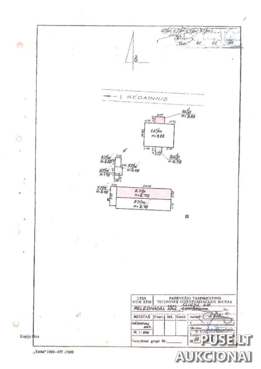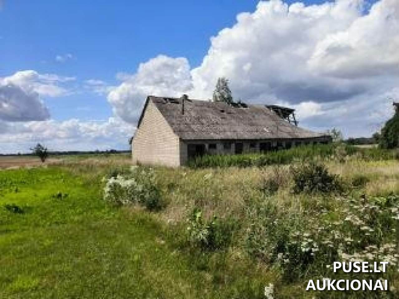 Pastato statybos metai - 1960 m., sienos plytų, stogas šlaitinis šiferio, pažymėta, kad dalis stogo yra įgriuvusi. Turtas parduodamas esamos būklės.