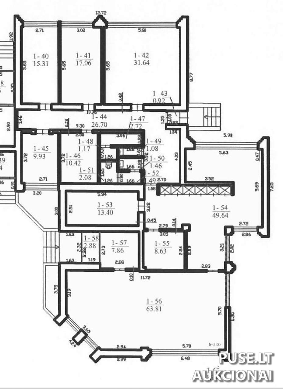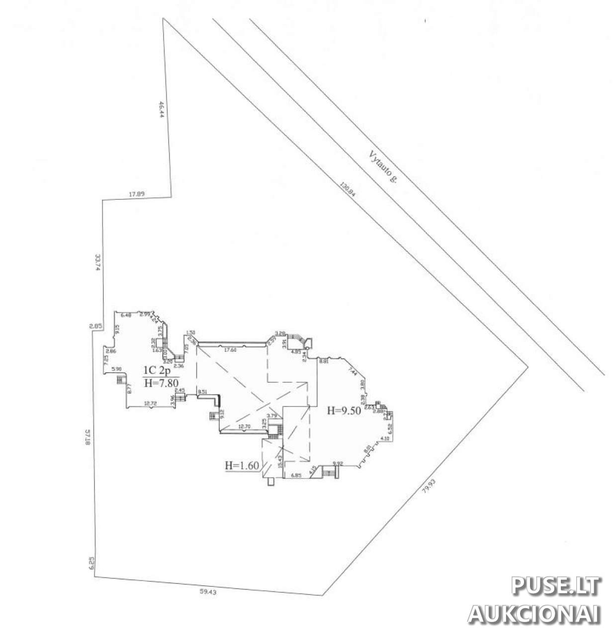 Parduodama 129/1000 dalis pastato, kas atitinka 268,20 kvadratinių metrų plotą pirmame aukšte.