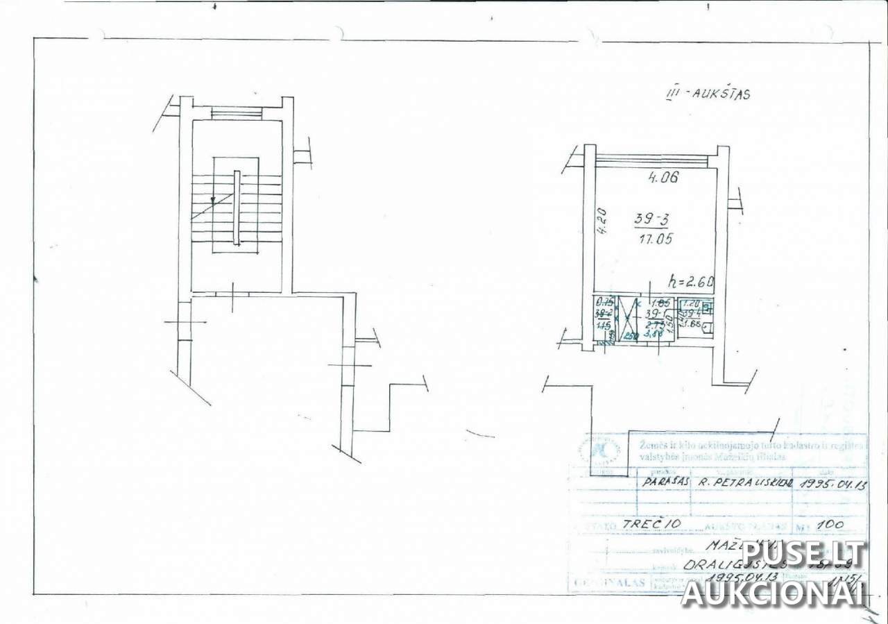 Bute yra 1 kambarys, bendras plotas 22.61 kv. m, gyvenamasis plotas 17.05 kv. m.