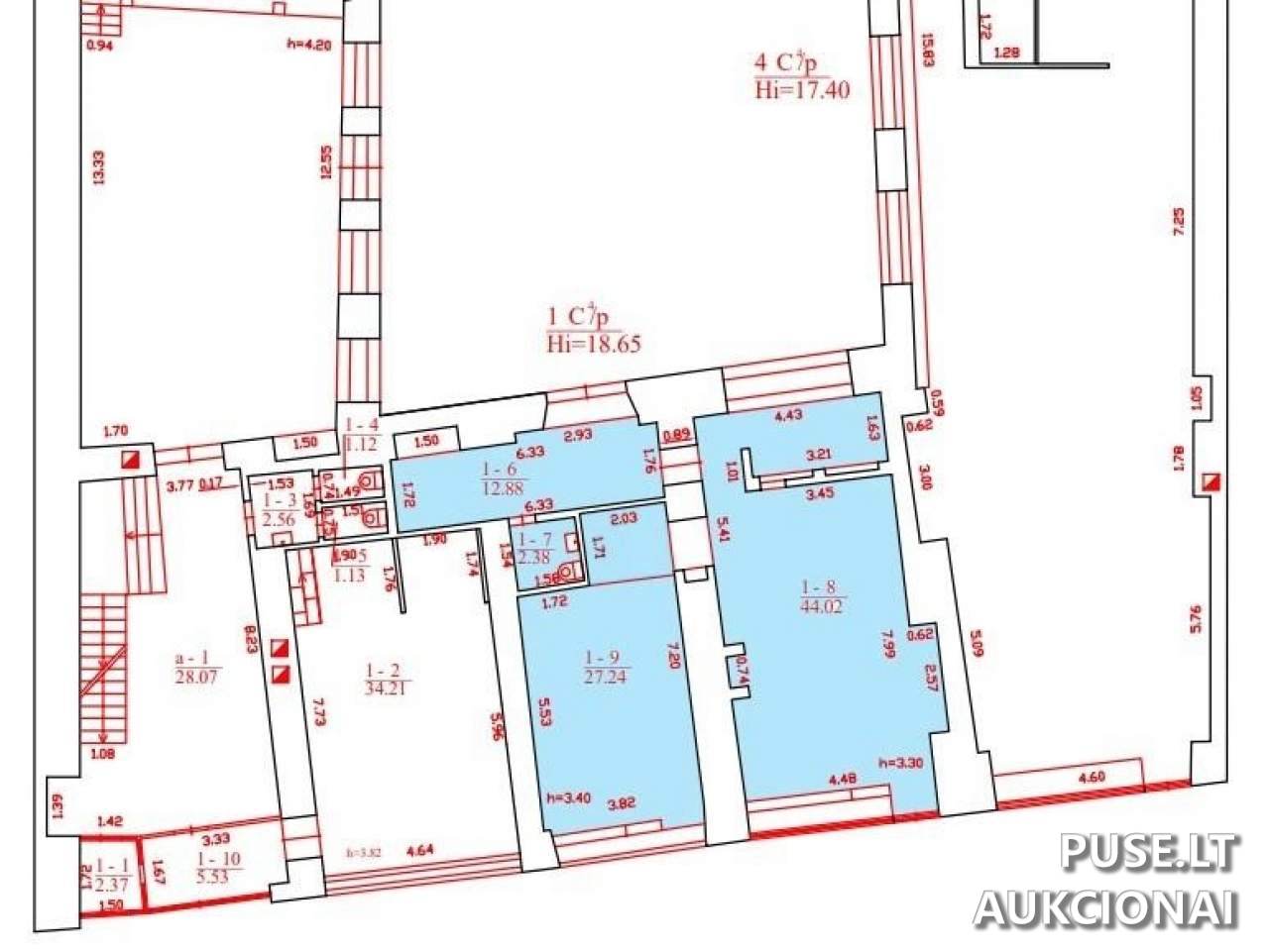 Nuomojamas bendras plotas yra 86,52 kv. m (patalpos indeksai 1-6 iki 1-9) 1-ame aukšte, adresu Didžioji g. 38, Vilniaus m. sav.